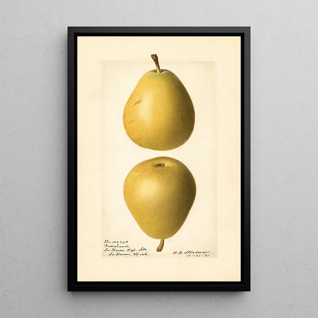 The art print Pyrus communis Groveland is an ideal choice to enhance your interior, whether in a living room, office, or bedroom. Its palette of soft, natural colors brings a touch of freshness and serenity to any space. The quality of the print ensures fidelity to the details of the original work, allowing you to fully enjoy the aesthetic appeal of this canvas. By choosing this art print, you opt for a decorative piece that not only enriches your environment but also evokes a love for nature and the timeless beauty of fruits.