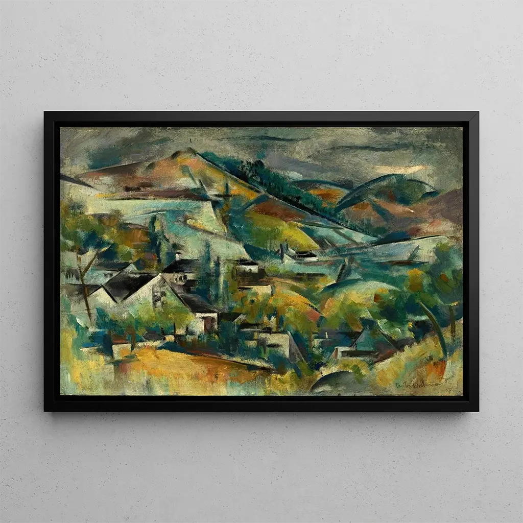 The "Québec" art print by Preston Dickinson transports us to the enchanting landscapes of Canada. This vibrant painting of colors evokes the wild and majestic beauty of nature. The warm and cool tones blend harmoniously, creating a lively and dynamic atmosphere. The oil on canvas technique allows Dickinson to play with light and shadow, bringing each element of the landscape to life. The eye is drawn to the meticulous details, from majestic trees to shimmering reflections on the water, offering an invitation to explore this preserved nature.