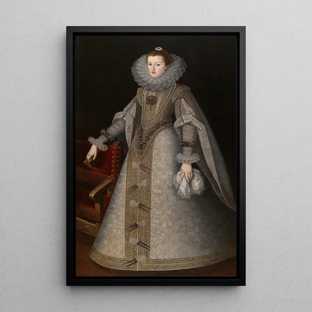 The Queen Marguerite of Spain, painted by Andrés López Polanco, is a work that exudes an impression of grandeur and elegance. The rich colors and refined details of the art print capture the beauty and dignity of the queen. The artist's technique, blending realism and finesse, highlights the delicate features of the face and the sumptuous ornaments of her gown. This art print, a true homage to royalty, invites the viewer to immerse themselves in the lavish world of the 17th-century Spanish court.