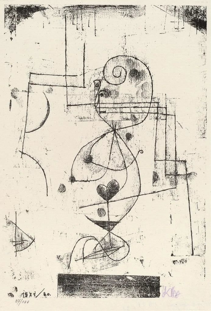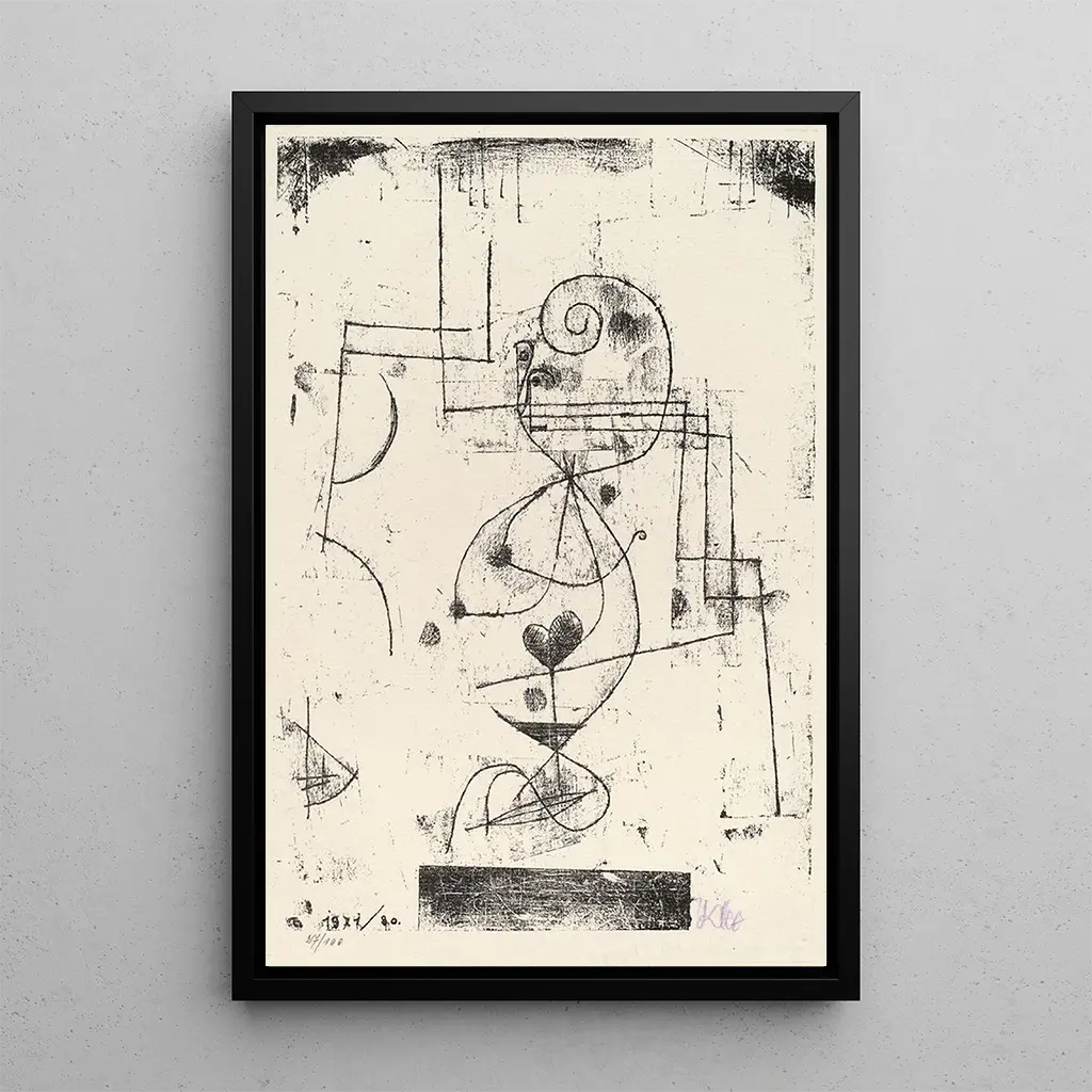 Paul Klee, born in 1879 in Switzerland, is an iconic figure of the expressionist movement and abstract art. Influenced by fauvism and cubism, he develops a personal style that combines poetry and abstraction. Teaching at the Bauhaus, Klee had a significant impact on modern art, exploring the relationships between color, form, and emotion. His works, often inspired by music and nature, reflect a quest for meaning and harmony. "Queen of Hearts" fits into this search, revealing the importance of imagination and emotion in his work, while demonstrating his unparalleled talent for transforming complex ideas into accessible images.