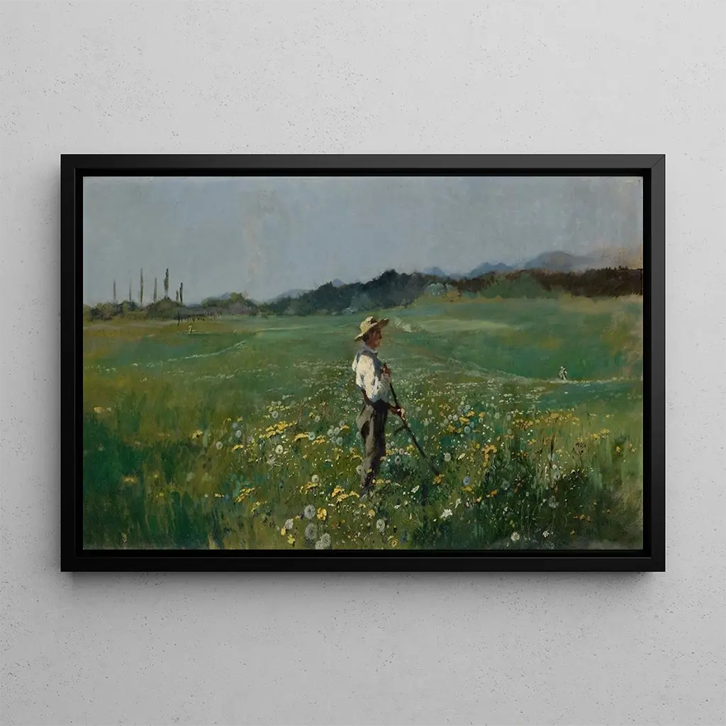 Faucheur dans un pré fleuri: an ode to nature and field work In this art print titled "Faucheur dans un pré fleuri," artist Frank Buchser delicately captures the beauty of rural life. The canvas features a vibrant color palette, where the bright greens of the fields blend with golden touches of flowers. The oil on canvas technique allows for the rendering of textures in the vegetation and the sunlight filtering through the leaves. The atmosphere conveyed by the piece evokes deep serenity, inviting the viewer to immerse themselves in this moment of hard work, while celebrating the beauty of the surrounding nature. Frank Buchser: a witness to his era and rural life Frank Buchser, a Swiss painter of the 19th century, is known for his depictions of peasant life and landscapes. Influenced by realism, he worked during a period when art turned toward more authentic subjects close to everyday life. His works demonstrate a particular sensitivity to scenes of rural life, often tinged with nostalgia for a changing world. Buchser was also a traveler, which allowed him to incorporate various influences into his art, enriching his pictorial approach. His work remains a valuable testimony to the relationship between man and nature at a time when industrialization was beginning to transform landscapes. A decorative acquisition with multiple assets The art print of "Faucheur dans un pré fleuri" is a decorative piece that will enhance any interior, whether in a living room, office, or bedroom. Its reproduction quality guarantees remarkable fidelity to the original work, allowing appreciation of every detail and nuance of color. This piece adds a touch of freshness and serenity to your decor, while evoking themes of work and nature. Its aesthetic appeal makes it an ideal choice for those wishing to create a warm and welcoming atmosphere at home, while celebrating the artistic legacy of Frank Buchser.