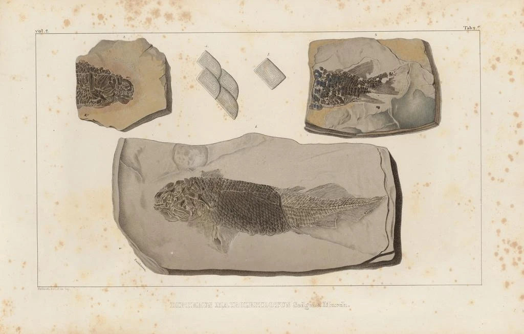 Louis Agassiz, an eminent naturalist of the 19th century, profoundly influenced the field of paleontology. Born in Switzerland, he emigrated to the United States where he dedicated his life to the study of fossils and glaciers. Influenced by the ideas of the time on evolution, Agassiz defended the theory of the independent creation of species, which sparked lively discussions. His work "Research on Fossil Fish" is a testament to his commitment to science and his desire to understand the origins of life. This art print is therefore not only a decorative object but also a reflection of an era when science was beginning to free itself from traditional dogmas.