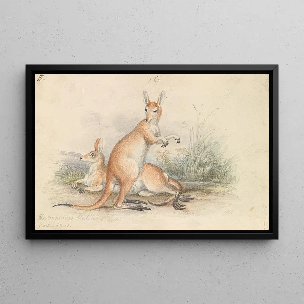 In this art print of Kangourous Reds, Charles Hamilton Smith captures the very essence of Australian wildlife. The kangaroos, majestic and graceful, seem to leap with an almost aerial lightness. The warm colors of the earth and sky blend harmoniously, creating a vibrant and lively atmosphere. The watercolor technique, used with finesse, brings to life the details of the fur and the texture of the landscape. It evokes an invitation to immerse oneself in this painting, to explore the vast expanses of Australia, while admiring the natural beauty of these iconic creatures.