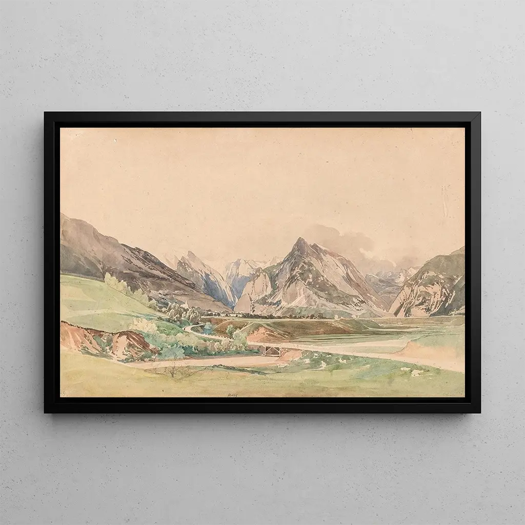 Region near Flitsch: a landscape imbued with serenity The art print of the canvas "Region near Flitsch" transports us to a calming landscape, where nature flourishes in a palette of greens and blues. The majestic mountains rise in the background, while the soft sunlight caresses the lush valleys. Thomas Ender's technique, blending watercolor and oil, creates an atmosphere of tranquility and harmony. Each brushstroke seems to capture the very essence of this place, inviting the viewer to immerse themselves in this bucolic scene. Thomas Ender: a pioneer of Romantic landscape painting Thomas Ender, an Austrian painter of the 19th century, is renowned for his Romantic landscapes that celebrate the natural beauty of Austria and its surroundings. Influenced by the Romantic movement, he was able to capture scenes of nature with a particular sensitivity, making him a forerunner in this field. His works, often inspired by his travels, testify to a deep admiration for nature and a quest for authenticity. The art print of "Region near Flitsch" fits into this tradition, reflecting his commitment to representing the beauty of landscapes with unmatched precision and poetry. A decorative piece with multiple assets This art print of "Region near Flitsch" is an ideal choice to enhance your interior, whether in a living room, office, or bedroom. Its printing quality guarantees remarkable fidelity to the colors and details of the original work, adding a touch of elegance and serenity to your decor. By choosing this piece, you not only add a work of art to your space but also an invitation to contemplation and escape, transforming your environment into a haven of peace.