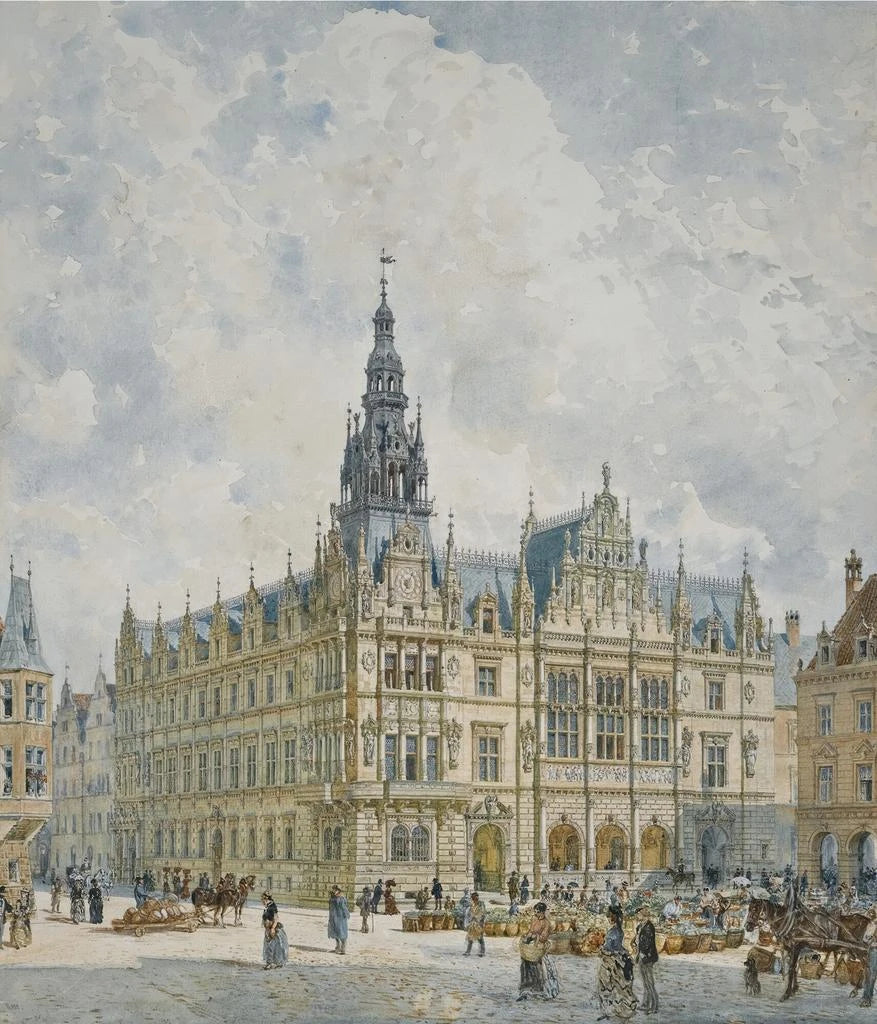 Renaissance-style Town Hall - Rudolf von Alt Source: Hôtel de ville de style Renaissance - Rudolf von Alt