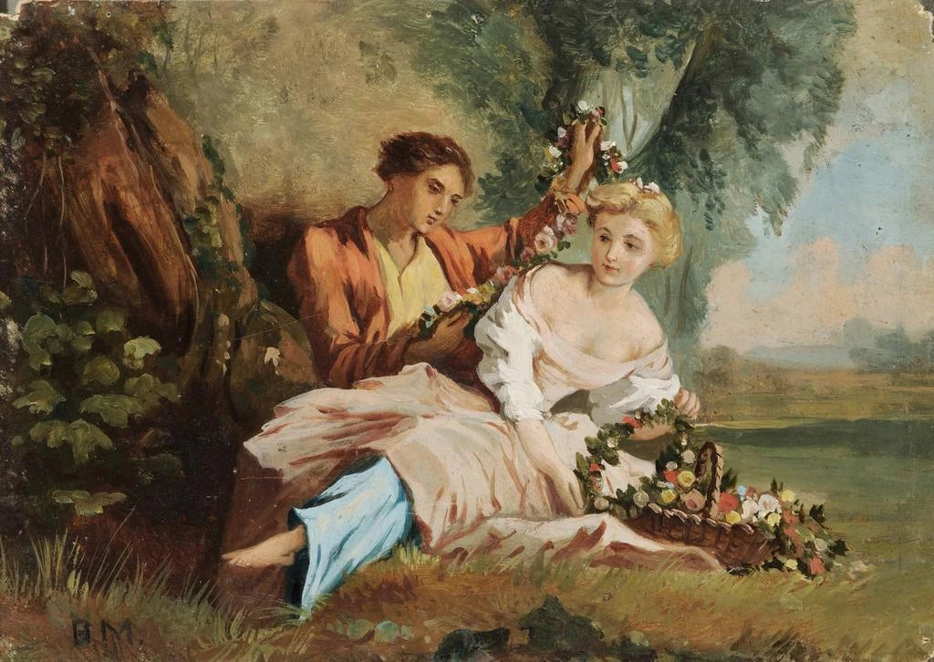 Barthélemy Menn, actif au XIXe siècle, est un peintre suisse reconnu pour ses œuvres inspirées de la littérature et de la mythologie. Influencé par le romantisme, il a su capturer des émotions profondes à travers ses compositions. Menn a été formé à l'École des beaux-arts de Genève et a voyagé à travers l'Europe, s'imprégnant des courants artistiques de son temps. Son travail, souvent empreint de poésie, témoigne d'une sensibilité unique, et "Rendez-vous Galant de Renaud et Armide" en est un exemple frappant, mêlant histoire et émotion.