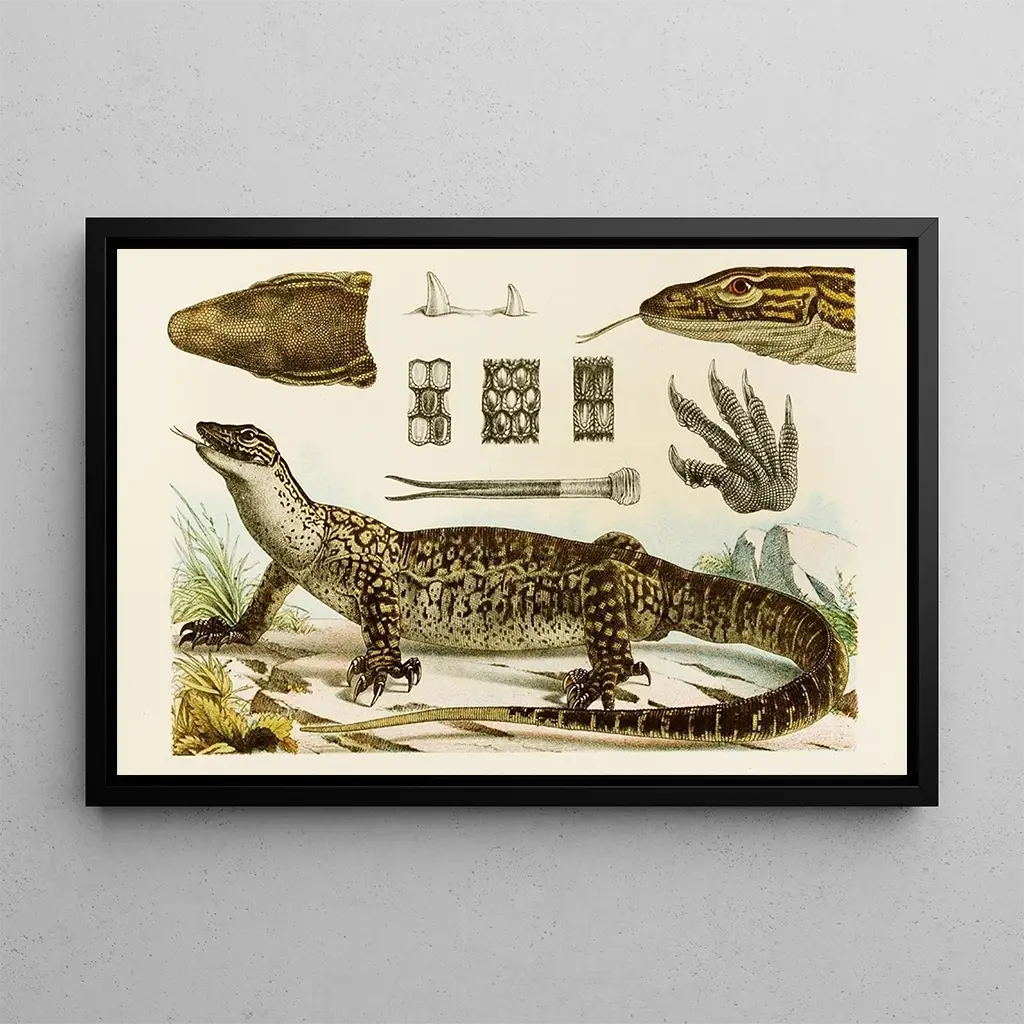 The art print of "Reptiles I" is an ideal decorative piece for nature and art enthusiasts. Whether in a living room, office, or bedroom, this painting will add a touch of elegance and curiosity to your interior. Its print quality guarantees fidelity to the colors and details of the original work, while offering undeniable aesthetic appeal. By choosing this canvas, you opt for a decoration that stimulates conversation and invites exploration of the animal world, while enriching your living space.