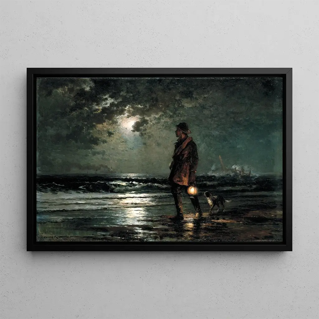 Rescue Patrol: An evocative painting of bravery and wild nature In "Rescue Patrol," Edward Moran immerses us in the heart of a captivating maritime scene. The tumultuous waves crash against the rocks, while a group of brave rescuers works tirelessly to save shipwrecked victims. The color palette, dominated by deep blues and bright whites, evokes both the power of the sea and the determination of men in the face of adversity. Moran's technique, blending realism and romanticism, creates an atmosphere that is both dramatic and inspiring, inviting the viewer to feel the urgency of the situation. Edward Moran: a master of American maritime landscape painting Edward Moran, born in 1829, was an American painter renowned for his maritime works. Influenced by the great European masters, he developed a unique style that combines precision and emotion. Active mainly in the 19th century, he captured the beauty and danger of the seas, becoming an iconic figure of the American artistic movement. His works, often inspired by historical events or tales of bravery, testify to the importance of the sea in the collective imagination of his time. "Rescue Patrol" fits perfectly into this tradition, celebrating both heroism and the majesty of nature. A decorative acquisition with multiple assets The art print of "Rescue Patrol" is a decorative piece that will enhance your interior, whether in a living room, office, or bedroom. Its printing quality guarantees remarkable fidelity to the colors and details of the original painting, allowing you to feel the full power of the artwork. This piece, with its dynamic and emotional atmosphere, draws the eye and sparks conversations. By incorporating this canvas into your decor, you add a touch of history and art, while celebrating human courage in the face of nature's forces.