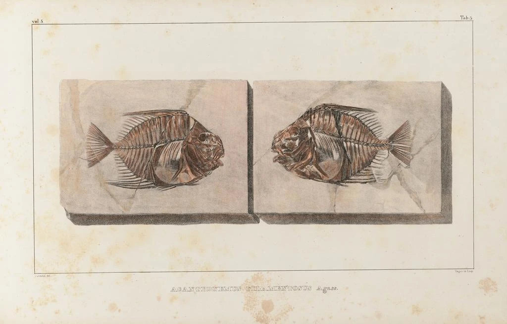 Louis Agassiz, born in 1807 in Switzerland, is an iconic figure in paleontology and natural history. His research on fossil fish revolutionized our understanding of evolution and ancient ecosystems. Influenced by the ideas of Lamarck and Darwin, Agassiz combined meticulous observation with scientific theory. His work, especially during the 19th century, marked a turning point in the study of extinct species, making him a pioneer in the field. The art print Recherches sur les poissons fossiles Pl016 reflects his commitment to making science accessible and fascinating.
