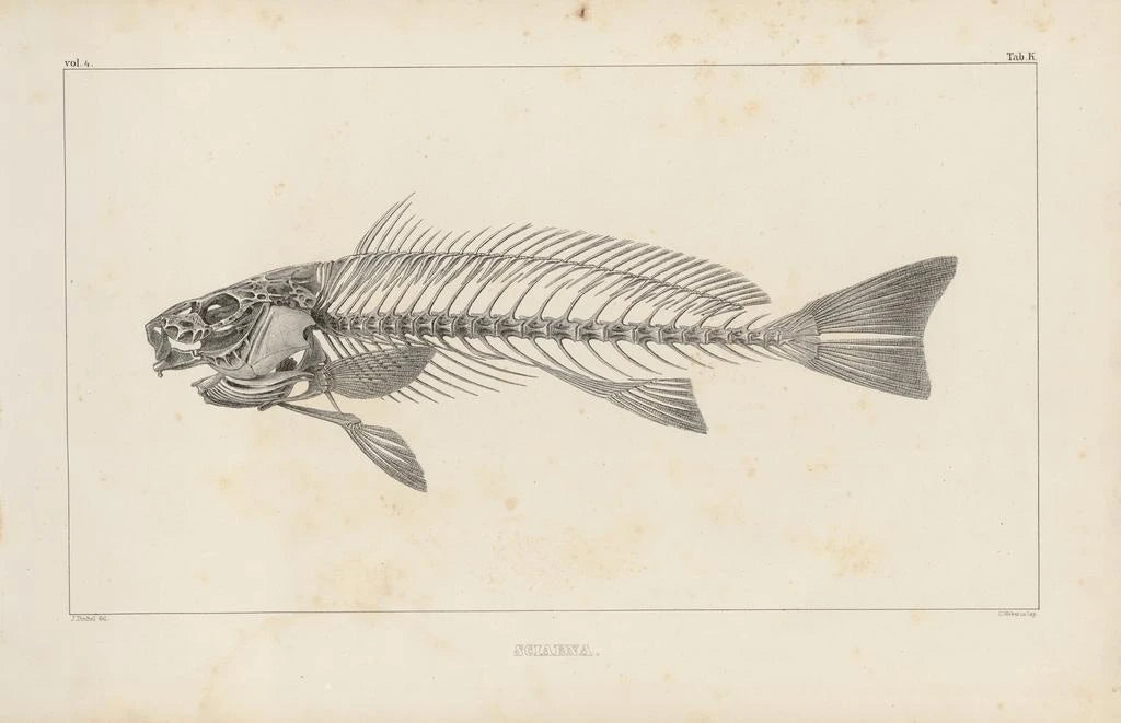 This art print of the work Recherches sur les poissons fossiles Pl345 transports us into a fascinating universe where science and art converge. The meticulous details of the fossils, rendered with remarkable precision, reveal the hidden beauty of these extinct creatures. The earthy tones and delicate nuances of the fossilized fish evoke an atmosphere of mystery and wonder, inviting the viewer to explore the depths of natural history. The technique used, combining watercolor and drawing, gives this canvas a lightness and fluidity that captivate the eye.
