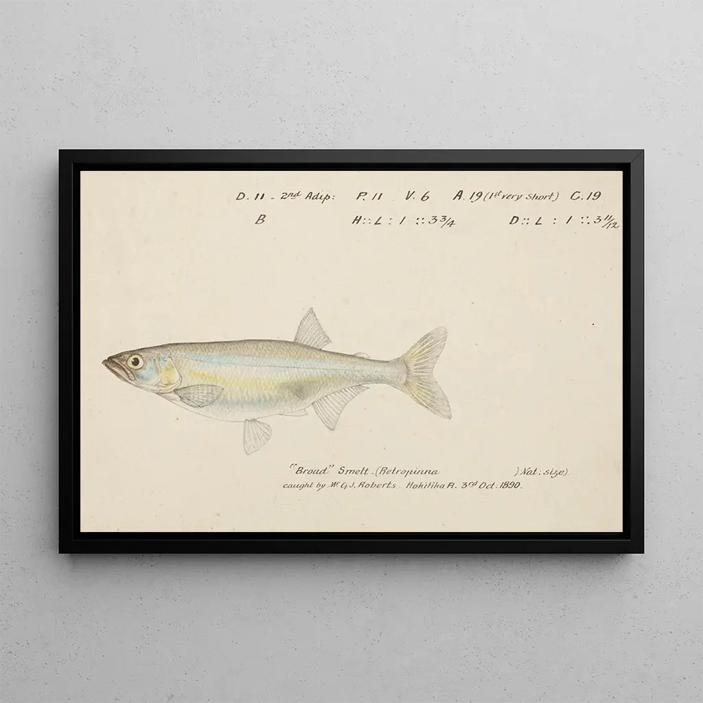The art print of Retropinna retropinna, the Smelt, makes a valuable addition to your interior decor. Whether in an office, a living room, or a bedroom, this piece will add a touch of elegance and serenity. Its print quality ensures remarkable fidelity to the colors and details of the original work, creating a captivating focal point in any space. By choosing this canvas, you are not only acquiring a piece of art for your interior but also an invitation to explore the beauty of the marine world, enriching your environment in an aesthetic and inspiring way.