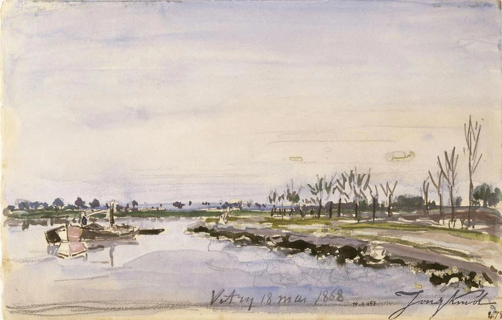 Jongkind, born in 1819 in the Netherlands, is often regarded as one of the forerunners of Impressionism. Influenced by the landscapes of his youth and by artists such as Turner, he develops a unique style that combines realism and poetic atmosphere. His career, marked by stays in France, allows him to explore the play of light and color, elements that would become essential for future generations of artists. Jongkind was able to capture the very essence of landscapes, making him a key figure in art history.