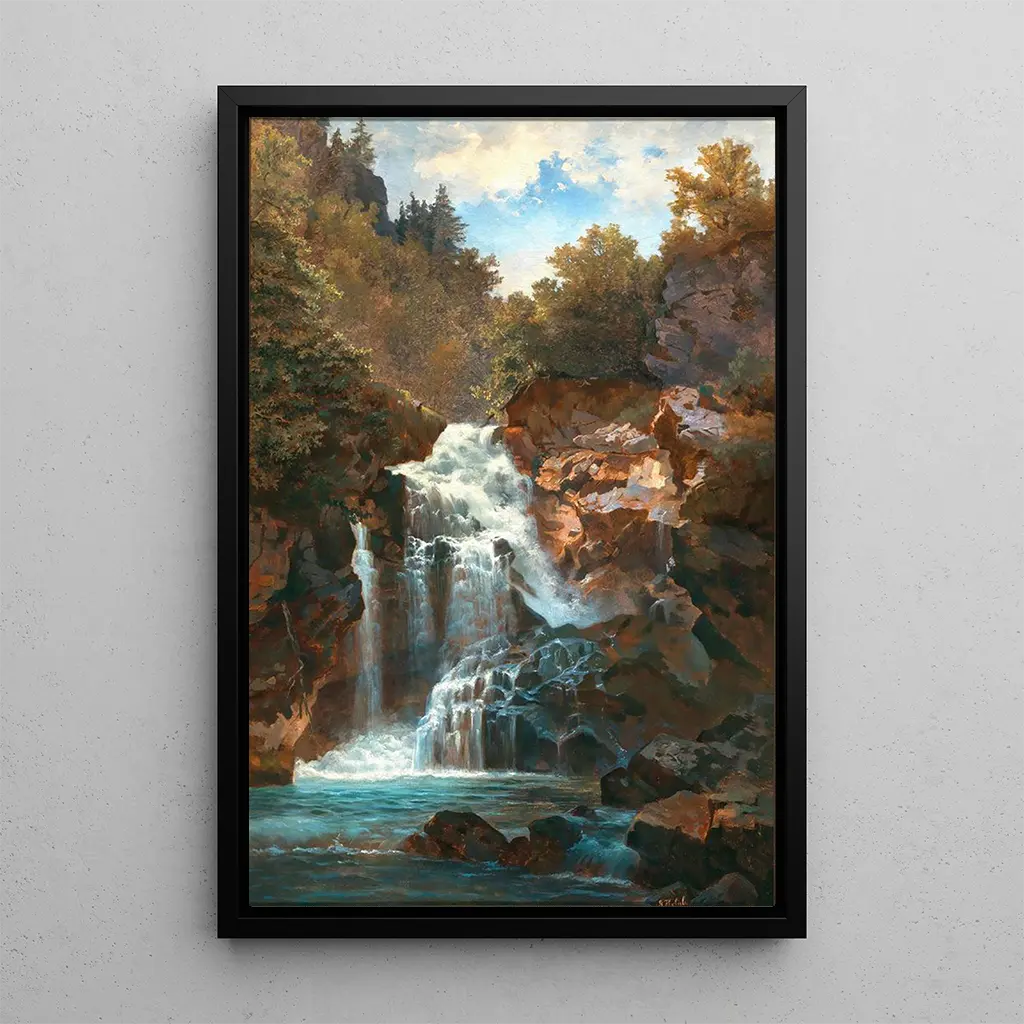 A roaring waterfall: a captivating natural spectacle The art print "A roaring waterfall" by Georg Holub immerses us in a universe where the power of nature is revealed with majesty. The vivid colors and shades of blue and green evoke the freshness of water, while the white splashes illustrate the dynamic movement of the waterfall. Holub's technique, blending realism and impressionism, creates a lively and immersive atmosphere, inviting the viewer to feel the strength and serenity of this landscape. Every detail, from the surrounding foliage to the rocks, is carefully rendered, demonstrating a technical mastery that captures the very essence of nature. Georg Holub: a master of romantic landscape art Georg Holub, a painter active in the 19th century, is renowned for his landscapes that celebrate the wild beauty of nature. Influenced by the romantic movement, he seeks to express deep emotions through his works. Holub often explored themes related to nature, aiming to capture fleeting moments of light and movement. His style, characterized by dynamic brushstrokes and a rich palette, reflects an era where the artist endeavored to approach reality while infusing it with a poetic dimension. His paintings, including "A roaring waterfall," are testimonies of his commitment to depicting nature in all its splendor. A decorative acquisition with multiple advantages The art print of "A roaring waterfall" is a decorative piece that will enhance your interior, whether it is a living room, office, or bedroom. Its print quality and fidelity to the original artwork guarantee an impressive aesthetic rendering, bringing a touch of nature and serenity to your space. This artwork, through its dynamism and beauty, captures the eye and sparks conversations, making it a central element of your decor. By choosing this canvas, you opt for a piece that combines art, emotion, and elegance, while celebrating the power of nature.