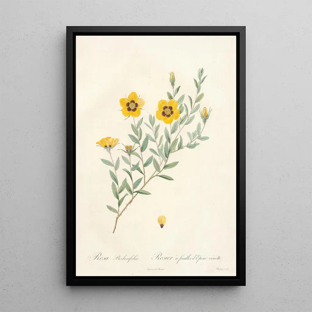 The art print of Rosa Berberifolia is an ideal decorative piece to enhance your interior. Whether in a living room, office, or bedroom, this artwork adds a touch of freshness and serenity. Its printing quality guarantees remarkable fidelity to the colors and details of the original, making this canvas a true aesthetic asset. By choosing this piece, you opt for a refined decoration that will captivate your guests and enrich your living space.
