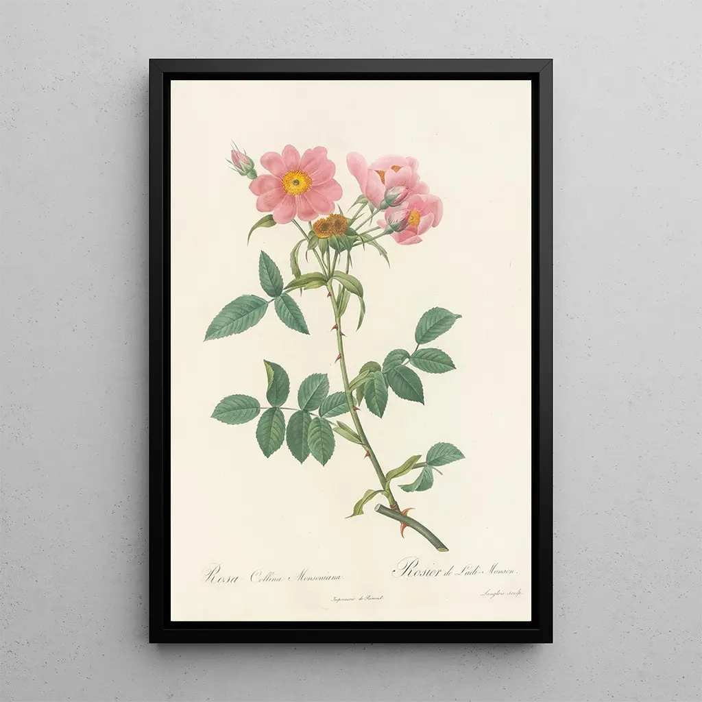 Rosa Collina Monsoniana: a tribute to natural beauty The art print of Rosa Collina Monsoniana presents itself as a true ode to nature, where each petal seems to vibrate with its own life. The shades of pink and green blend delicately, creating a lively tableau that evokes the freshness of blooming gardens. The technique of Redouté, combining watercolor and drawing, pays homage to the complexity of shapes and textures. The atmosphere emanating from this piece is both serene and inspiring, inviting a deep contemplation of the ephemeral beauty of flowers. Pierre Joseph Redouté: a master of botanical illustration Pierre Joseph Redouté, an emblematic figure of the 18th century, revolutionized botanical illustration with his artistic approach. Raised in an artistic environment, he mastered the blend of science and aesthetics, becoming the court painter of flowers in France. His works, including Rosa Collina Monsoniana, testify to his immense talent and attention to detail. Influenced by the botanical discoveries of his time, Redouté captured the very essence of plants, making his paintings essential references for botanists and art enthusiasts. A decorative acquisition with multiple advantages The art print of Rosa Collina Monsoniana is a wise decorative choice to enrich your living space. Whether in an elegant living room, a creative office, or a peaceful bedroom, this canvas will add a touch of nature and serenity. Its printing quality guarantees vibrant colors and meticulous details of the original work, while offering undeniable aesthetic appeal. By integrating this art print into your decor, you create an inspiring and calming environment, where the beauty of flowers invites itself into everyday life.