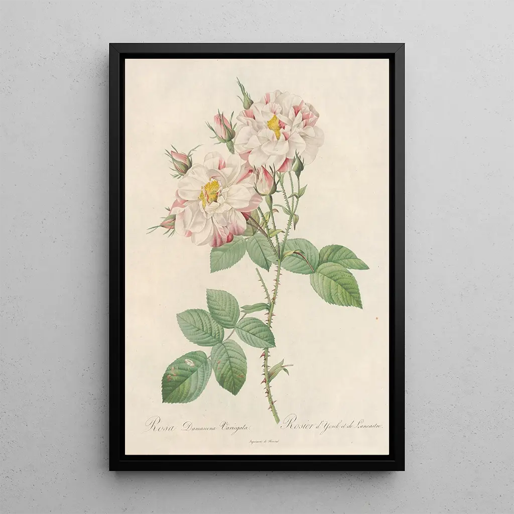 The art print of Rosa Damascena Variegata is an ideal choice to enhance your interior decor, whether in a living space, office, or bedroom. Its print quality and fidelity to the original work make it a distinguished decorative element. This canvas, with its vibrant colors and timeless charm, easily harmonizes with various interior styles, whether modern or classic. By choosing this art print, you bring a floral and lively touch to your home, while paying tribute to the art of Pierre Joseph Redouté.