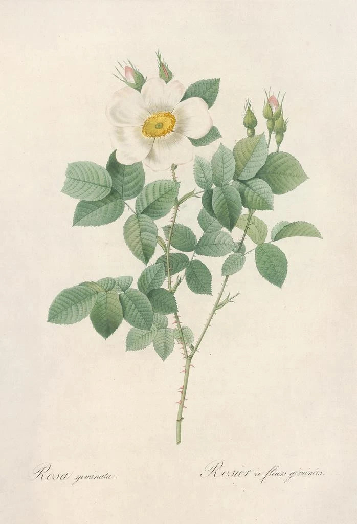 Pierre Joseph Redouté was a Belgian painter and illustrator, renowned for his contributions to botanical art in the 18th century. His work is distinguished by a rigorous scientific approach, while maintaining a unique artistic sensitivity. Redouté created numerous illustrations for botanical publications, becoming a reference in the field. His passion for flowers, especially Rosa Geminata, reflects his dedication to capturing the beauty of nature. His influence endures, and his works continue to be celebrated by art and botany enthusiasts.