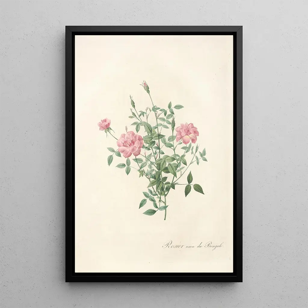 Rosa Indica Pumila: an ode to floral delicacy The art print of Rosa Indica Pumila immerses us in a world of softness and finesse. This work by Pierre Joseph Redouté, renowned for his botanical illustrations, reveals a rose with petals delicately shaded in pink and white. The watercolor technique, executed with mastery, gives the canvas an exceptional luminosity, highlighting every detail of the leaves and flowers. The atmosphere emanating from this piece is both calming and inspiring, inviting the viewer to appreciate the ephemeral beauty of nature. Pierre Joseph Redouté: the master of flowers in the 18th century Pierre Joseph Redouté, nicknamed the "Raphael of flowers," was a Belgian artist who marked his era with his exceptional talent in botanical illustration. Active at the end of the 18th century and the beginning of the 19th, he captured the beauty of plants with unparalleled precision. Influenced by royal gardens and botanical discoveries of his time, Redouté collaborated with renowned botanists, enriching his work with a scientific dimension. His legacy endures through his numerous illustrations, which continue to delight art and botany enthusiasts. A decorative acquisition with multiple advantages The art print of Rosa Indica Pumila is an ideal decorative choice to enhance your interior. Whether in a living room, office, or bedroom, this artwork adds a touch of nature and serenity to your space. Its printing quality guarantees faithful reproduction of the colors and details of the original work, allowing you to enjoy a lasting aesthetic appeal. By integrating this canvas into your decor, you give your environment a note of sophistication and refinement, while celebrating the timeless beauty of flowers.