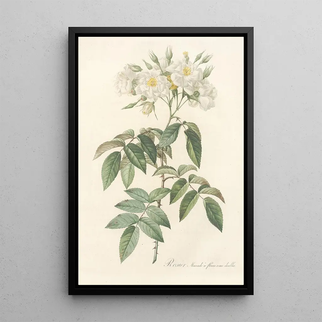 Rosa Moschata Flore Semi-Pleno : a delicate floral harmony The art print of Rosa Moschata Flore Semi-Pleno, created by Pierre Joseph Redouté, immerses us in a world of softness and lightness. This canvas, characterized by its pastel shades and meticulous execution, brilliantly illustrates the ephemeral beauty of nature. The delicate petals, with shades of pink and white, seem almost tangible, while the subtle background highlights the blooming. Redouté, known for his botanical approach, uses watercolor painting techniques that give his works a serene and contemplative atmosphere, inviting the viewer to admire every detail. Pierre Joseph Redouté: the master of flowers in the 18th century Pierre Joseph Redouté, nicknamed the "Raphael of flowers," is an iconic figure in 18th-century botanical painting. Born in 1759 in Belgium, he settled in Paris where he became the official painter of court flowers. Influenced by neoclassical and romantic currents, Redouté captured the beauty of plants with scientific precision while maintaining artistic sensitivity. His works, often commissioned by aristocrats and botanists, played a crucial role in documenting the floral species of his time, making him a pioneer in the field of botanical illustration. A decorative acquisition with multiple assets The art print of Rosa Moschata Flore Semi-Pleno is a decorative piece that harmoniously fits into various spaces, whether a living room, an office, or a bedroom. Its print quality and fidelity to the original details make it an ideal choice for those who appreciate floral art. With its undeniable aesthetic appeal, this canvas brings a touch of freshness and sophistication to your interior. By choosing this art print, you not only acquire a work of art but also a decorative element that evokes the timeless beauty of nature.