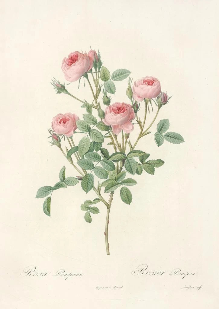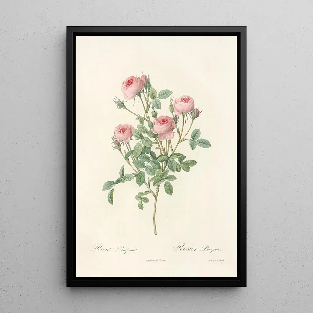 Pierre Joseph Redouté, often nicknamed the "Raphael of flowers," is an iconic figure in botanical art of the 18th century. Born in 1759 in Belgium, he was able to capture the essence of plants with unparalleled precision, influenced by the naturalist currents of his time. His career was marked by collaborations with renowned botanists and prestigious commissions, notably for the royal gardens of France. Redouté left a lasting legacy in the art world, his works continuing to inspire botanical and floral art enthusiasts. Rosa Pomponia is one of his most appreciated creations, demonstrating his exceptional talent.