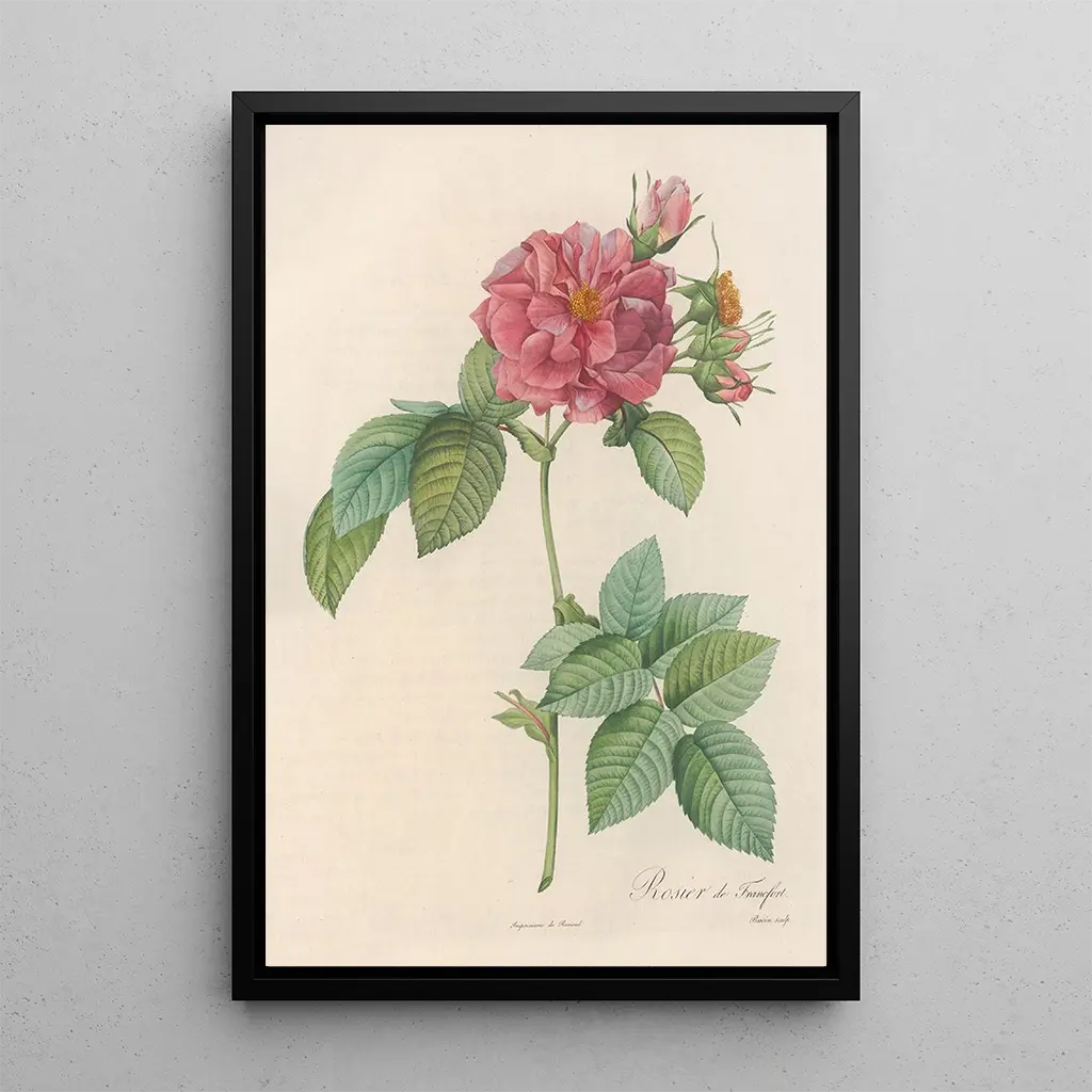 Rosa Turbinata : a delicate floral harmony The art print of Rosa Turbinata, an iconic work by Pierre Joseph Redouté, evokes an unparalleled natural beauty. The petals, in a soft pink, unfold gracefully, while the shades of green in the leaves add depth to the composition. Redouté, master of watercolor, employs a meticulous technique that captures the light and texture of the flowers, creating an atmosphere that is both serene and poetic. This canvas invites attentive contemplation, revealing subtle details of each petal and the delicacy of nature. Pierre Joseph Redouté : the painter of flowers in the service of botany Pierre Joseph Redouté, nicknamed the "Raphael of flowers," was a Belgian artist of the 18th century whose work left a mark on the history of botanical art. Influenced by neoclassical currents, he skillfully combined scientific rigor with artistic sensitivity. His work, mainly created at the request of botanists and collectors, testifies to the importance of botany in his time, notably through the publication of his famous illustrated books. Redouté thus contributed to the dissemination of botanical knowledge while elevating the depiction of flowers to the level of art. A decorative acquisition with multiple assets The art print of Rosa Turbinata is an ideal decorative piece to enhance your interior, whether in an elegant living room, an inspiring office, or a calming bedroom. Its print quality and color fidelity pay tribute to the original work, while adding a touch of nature to your decor. This artwork, with its undeniable aesthetic appeal, will attract art and botany enthusiasts, while creating a warm and welcoming atmosphere in your living space.