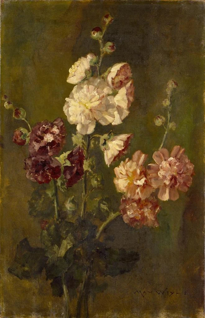 Max Weyl, an artist of the early 20th century, is renowned for his ability to capture the ephemeral beauty of nature through his works. Influenced by the Impressionist movement, he developed a unique style that emphasizes light and color. Weyl dedicated a large part of his career to painting flowers, drawing inspiration from the gardens and landscapes around him. His work reflects a particular sensitivity to nature, and "Rose trémière" is a perfect example, demonstrating his love for botany and his talent for floral representation.