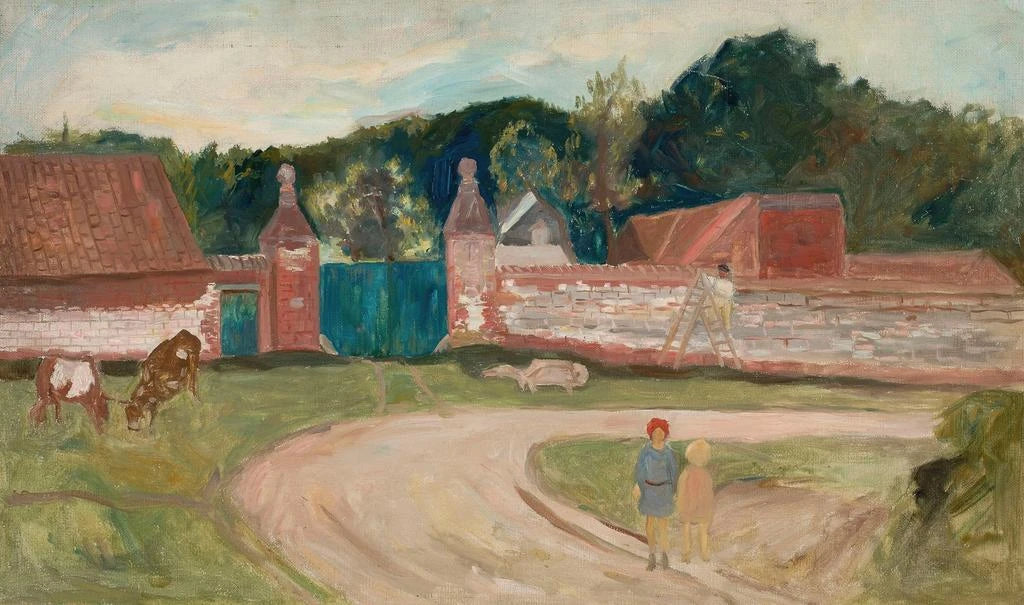 Tadeusz Makowski, born in Poland in 1882, was a painter who skillfully blended influences from his homeland with those of modern art. Active mainly in the 1920s and 1930s, he was influenced by the expressionist movement while incorporating elements of Polish folklore into his work. His career led him to Paris, where he mingled with other avant-garde artists. "Route devant la ferme" reflects his commitment to depicting everyday life and landscapes from his childhood, while fitting into an era where art sought to express deep emotions and social realities.