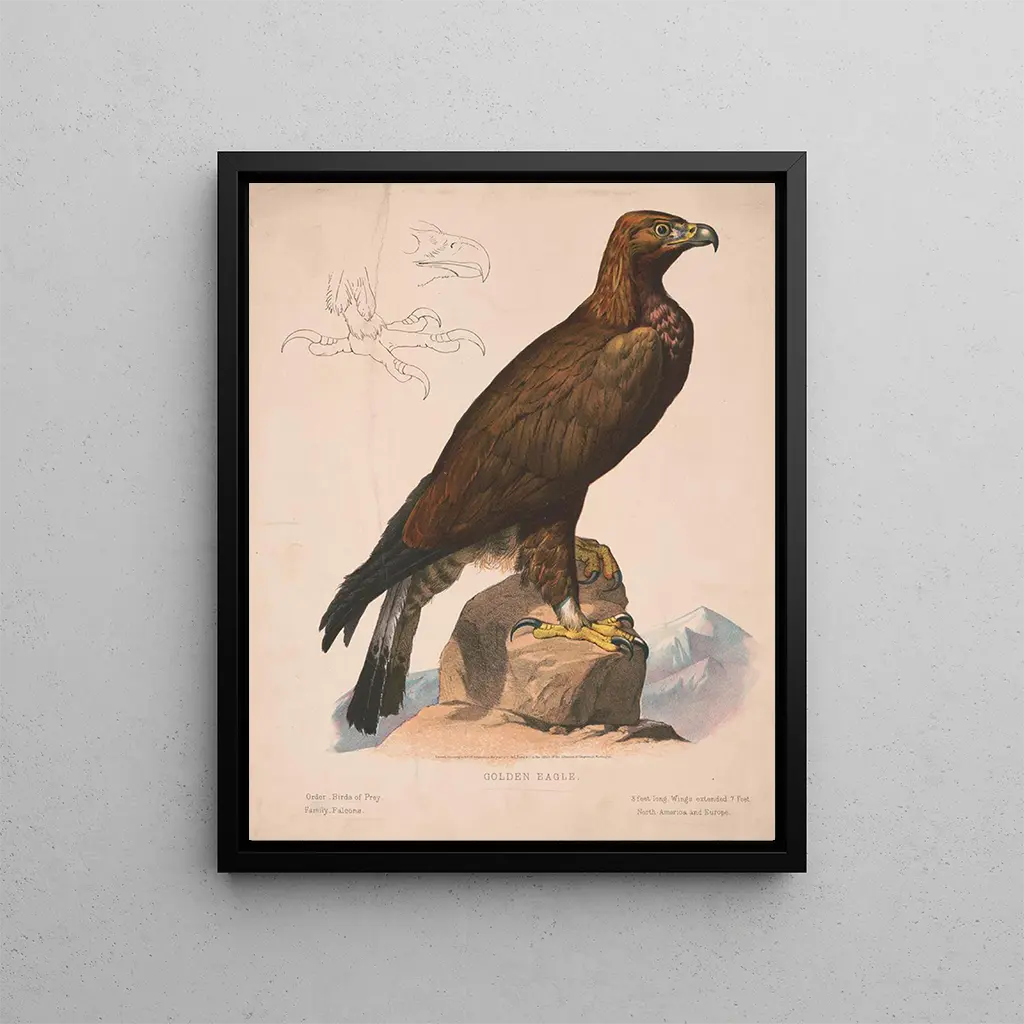 In the world of wildlife art, few works manage to capture the essence of a subject with as much depth and precision as those of Louis Prang. His illustration "Golden Eagle" stands out for the way it evokes the majesty and power of this iconic bird. Through this piece, Prang invites us to contemplate not only the beauty of nature but also the necessity of preserving the species that inhabit our planet. The eagle, often seen as a symbol of freedom, is depicted here in all its splendor, with finely detailed feathers and a piercing gaze creating an immediate connection with the viewer. This dynamic representation transcends mere decorative art to become a true call to conservation.