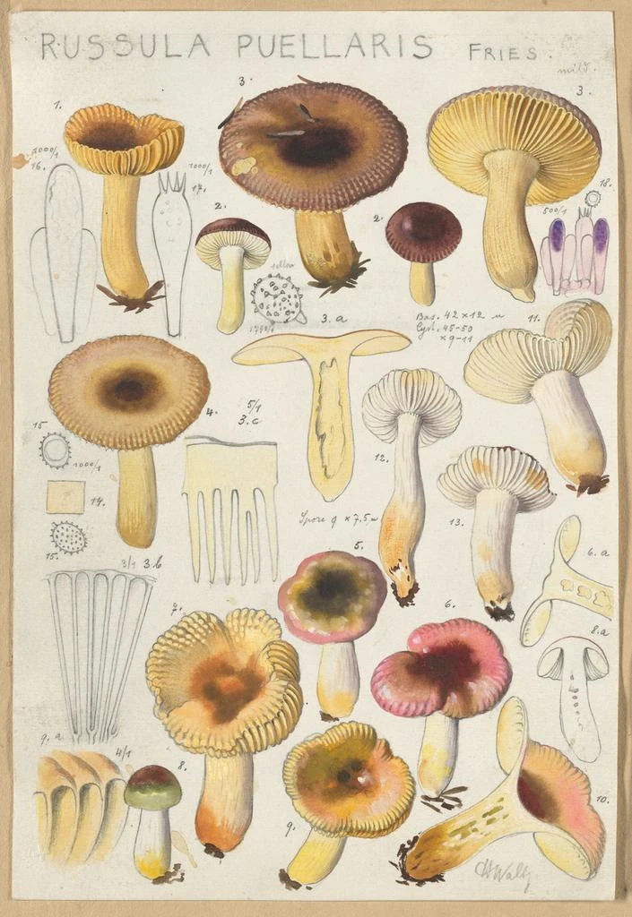 Hans Baldung, a prominent figure of the Renaissance, distinguished himself with his unique approach to painting. Born in 1484, he was a student of Albrecht Dürer, which greatly influenced his style. Baldung is recognized for his ability to fuse realism with symbolic elements, exploring themes such as life, death, and nature. His work, rich in detail and emotion, reflects the concerns of his time while foreshadowing future artistic movements. With Russula puellaries, he offers us a poetic vision of nature, demonstrating his undeniable talent.