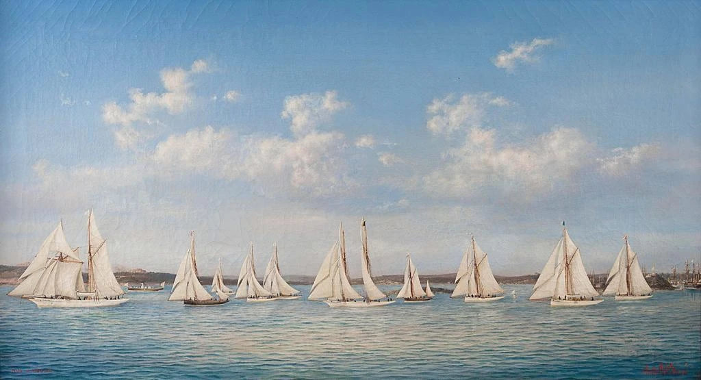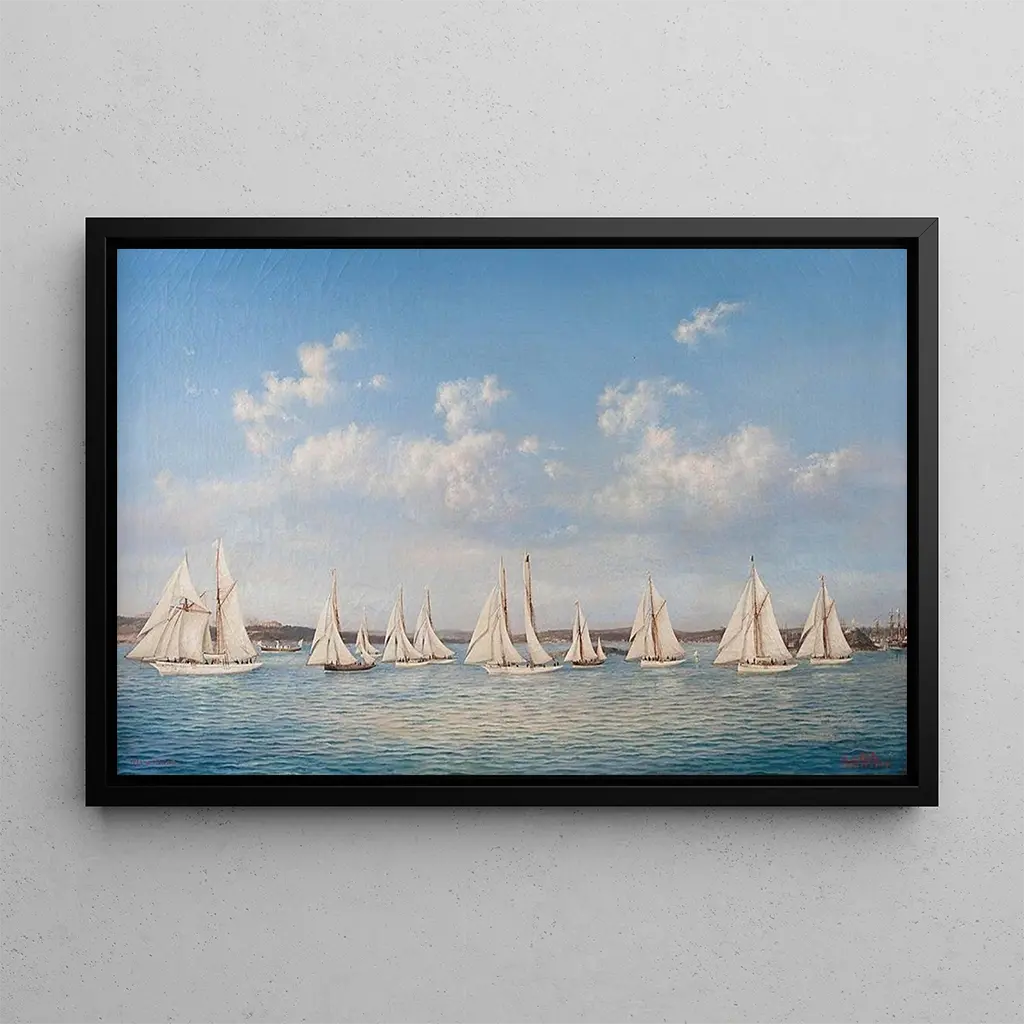 Sailing Regatta: A Nautical Ballet Under the Azure Sky The canvas "Sailing Regatta" by Ludwig Rubelli von Sturmfest depicts a vibrant scene where white sails gracefully unfurl on shimmering waters. The vivid colors, ranging from deep blues to emerald greens, create a dynamic and lively atmosphere, almost tangible. The artist's technique, skillfully blending realism with an impressionist touch, allows viewers to feel the movement of the waves and the breath of the wind. Every detail, from the reflections on the water to the billowing sails, contributes to a harmonious composition that invites escape and contemplation. Ludwig Rubelli von Sturmfest, active in the 19th century, is renowned for his depictions of the sea and nautical activities. Influenced by the Romantic movement, he seeks to capture the beauty of nature while highlighting human passion for navigation. His work reflects a time when maritime art experienced a renaissance, mirroring both the rise of nautical leisure and the importance of the sea in European culture. Rubelli's paintings often carry a nostalgia for bygone eras, while celebrating the freedom that the sea offers. A decorative acquisition with multiple advantages The art print of "Sailing Regatta" is an ideal piece to enhance various living spaces, whether in a living room, office, or bedroom. Its aesthetic appeal, reinforced by high-quality printing, recreates the enchanting atmosphere of the sea within your home. The fidelity of colors and details ensures that every glance at this art print will evoke feelings of freedom and adventure. By choosing this art print, you opt for a piece that not only enriches your decor but also sparks conversations and dreams of escape.