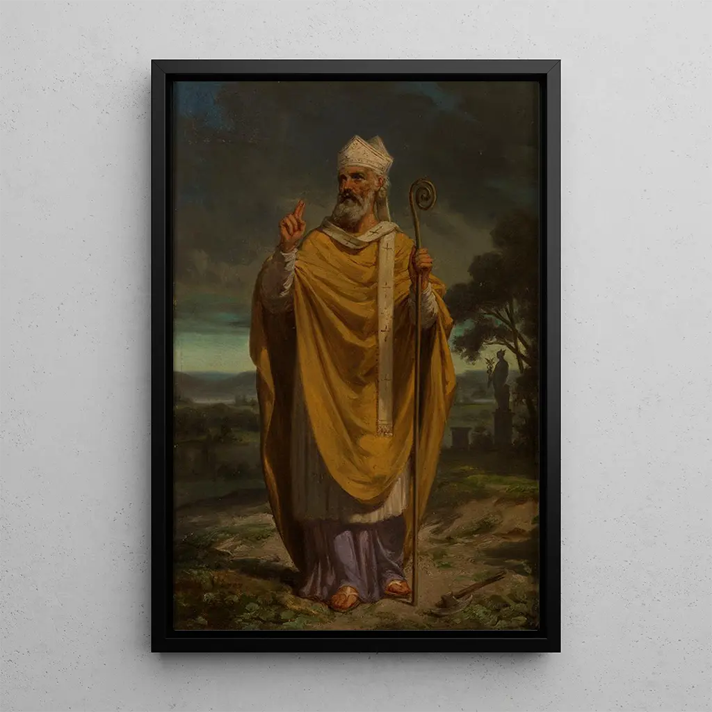 The art print of "Saint Denis" transports us into the spiritual and artistic universe of the Middle Ages. This piece, rich in symbolism, depicts the patron saint of Paris in a posture imbued with serenity and strength. The vivid colors and meticulous details, characteristic of the religious art of the period, create an atmosphere of devotion and reverence. The technique used, likely oil on canvas, allows for a striking rendering of textures and nuances, offering an almost tangible vision of the spirituality surrounding this iconic figure.