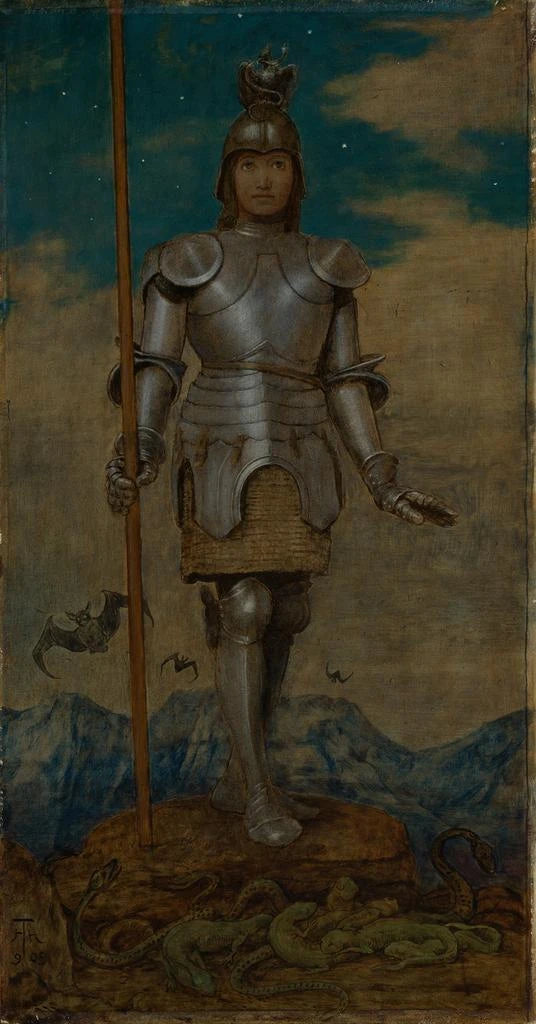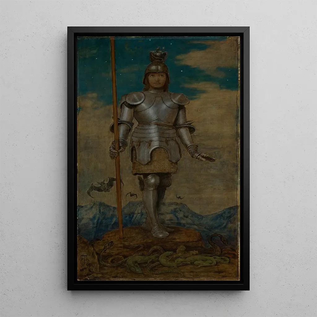 Saint Georges the knight: a hero at the heart of legend In the canvas "Saint Georges the knight," Hans Thoma brilliantly captures the heroic essence of his central character. The dynamic composition, where the knight stands proudly on his steed, is accentuated by vivid colors and meticulous details. The shades of green and red intertwine to create an atmosphere that is both vibrant and mystical. Thoma's technique, blending realism and symbolic elements, invites the viewer to delve into an epic narrative where courage and faith meet. Each brushstroke seems to tell a story, making this artwork a true invitation to contemplation. Hans Thoma: a master of German symbolism Hans Thoma, an emblematic figure of German symbolism, successfully combined tradition and modernity throughout his career. Born in 1839, he was influenced by Romanticism and Realism, incorporating folkloric elements into his works. Thoma was also a passionate advocate of folk art, seeking to represent the values and beliefs of his time. His period of creation, spanning from the late 19th century to the early 20th century, is marked by a quest for authenticity and spirituality. "Saint Georges the knight" perfectly illustrates this pursuit, making the artist an essential figure of his era. A decorative reproduction with multiple assets The art print of "Saint Georges the knight" is a decorative piece that will enrich your interior, whether in a living room, office, or bedroom. Its printing quality guarantees remarkable fidelity to the details and colors of the original artwork, adding a touch of elegance and culture to your space. The aesthetic appeal of this canvas lies in its storytelling power, captivating the eye and the mind of visitors. By choosing this art print, you opt for a piece that not only enhances your decor but also evokes universal themes of bravery and legend.