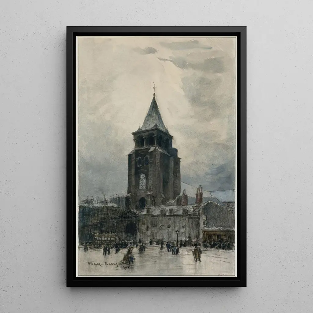 L'œuvre "L'Église Saint-Germain-des-Prés" de Frank Myers Boggs capture avec finesse la majesté de l'un des plus anciens édifices religieux de Paris. À travers une palette de couleurs douces et lumineuses, l'artiste réussit à transmettre l'atmosphère paisible qui règne autour de cette église emblématique. Les jeux de lumière et d'ombre sur les pierres anciennes évoquent une sensation de sérénité, tandis que les détails architecturaux sont rendus avec une précision remarquable. Cette reproduction invite à une contemplation silencieuse, permettant au spectateur de s'immerger dans la beauté intemporelle de ce lieu chargé d'histoire.