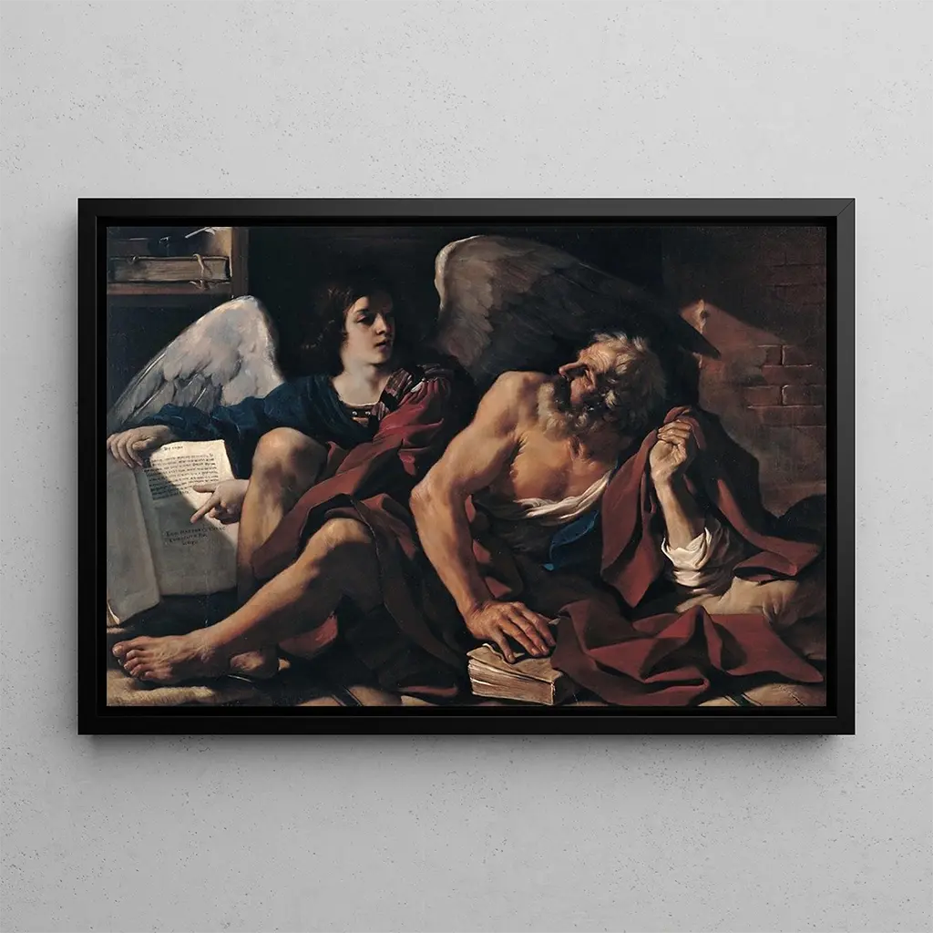 This art print of "Saint Matthew and the Angel" is a centerpiece that will enhance your interior, whether in a living room, office, or bedroom. Its reproduction quality guarantees remarkable fidelity to the original work, allowing you to appreciate every nuance of color and detailed craftsmanship. The aesthetic appeal of this canvas makes it an ideal choice for those wishing to add a touch of elegance and spirituality to their decor. By incorporating this painting into your space, you do not just beautify your environment but also invite reflection and contemplation.