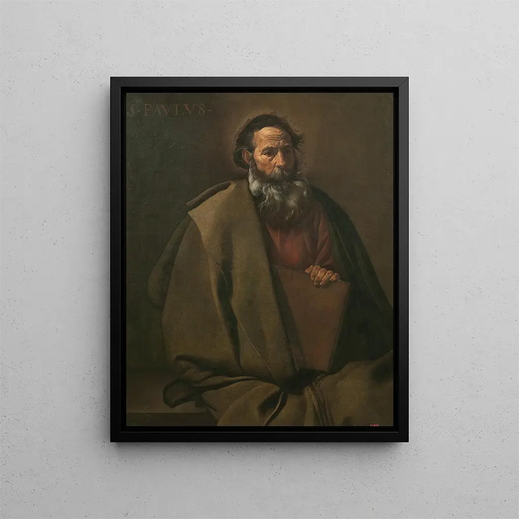 Diego Velázquez's masterpiece "Saint Paul" is a timeless work that transcends time and space. Created in the 17th century, this painting embodies technical mastery and psychological depth that characterize Velázquez's art. Immersing oneself in this piece, the viewer is immediately captivated by the commanding presence of Saint Paul, whose intense gaze seems to pierce souls. The nuances of light and shadow create a mystical atmosphere, inviting contemplation and reflection. This art print of Saint Paul - Diego Velázquez allows appreciation of the richness of the original work while offering an entry point into the fascinating universe of the Spanish painter. Style and uniqueness of the work Velázquez's style is remarkable for its ability to capture the very essence of his subjects. In "Saint Paul," the chiaroscuro technique is highlighted, emphasizing the contrast between divine light and the darkness surrounding the saint. The meticulous details, such as the folds of the robe and the expression on the face, testify to thorough observation and respect for the humanity of his characters. The composition, both simple and powerful, focuses attention on Saint Paul, while revealing a spiritual dimension. This work is not limited to a figurative representation; it also evokes universal themes such as faith, redemption, and the quest for truth, making "Saint Paul" a timeless piece that resonates with human concerns. The artist and his influence Diego Velázquez, an emblematic figure of the Spanish Golden Age, left an indelible mark on art history. His innovative approach, blending realism and idealization, has inspired many artists across the centuries. Velázquez was able to transcend the conventions of his time by adding a psychological dimension to his portraits, rendering his subjects strikingly human. His ability to play with light and space paved the way for future artistic movements, including Baroque and Impressionism. Studying "Saint Paul" provides a better understanding of Velázquez's impact on his contemporaries and subsequent generations, who saw in him a model of excellence.
