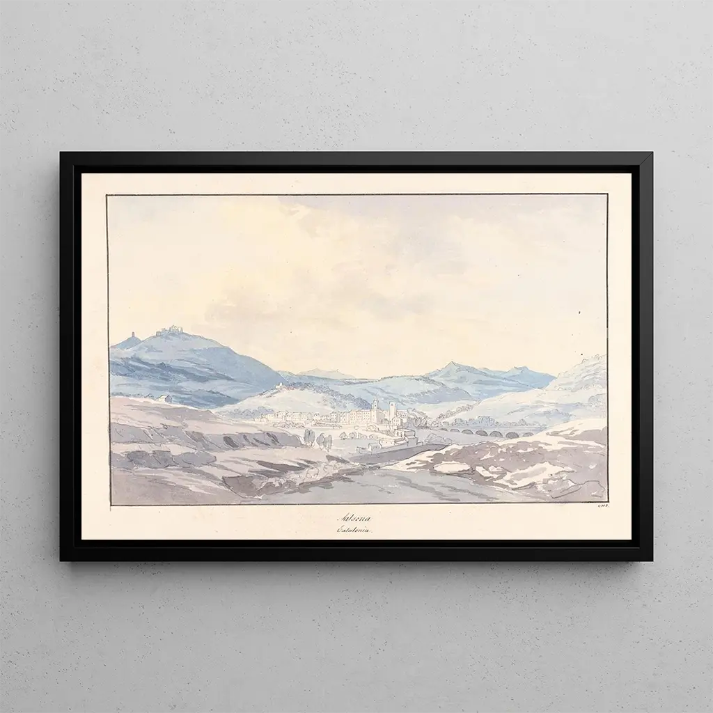 The Salsona Catalonia art print by Charles Hamilton Smith transports us to the heart of a picturesque landscape, where nature flourishes in a palette of bright colors. The green hues of the hills blend with the golden shades of the sunset, creating a warm and welcoming atmosphere. The watercolor technique, mastered by the artist, captures the fluidity of water and the lightness of the clouds. Each brushstroke seems to tell a story, inviting the viewer to immerse themselves in this bucolic scene, where time appears to stand still.