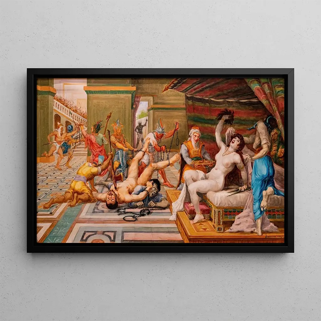 Samson and Delilah: A Captivating Love Tragedy The art print of "Samson and Delilah" by Jean-Baptiste Cariven depicts a dramatic and emotionally charged scene. This piece highlights the pivotal moment of the encounter between Samson, the biblical hero, and Delilah, the femme fatale. The rich colors and striking contrasts between light and shadow enhance the tension of this composition. Cariven employs a skillful technique to bring the characters to life, with their expressions and postures conveying both passion and betrayal. The atmosphere is imbued with mystery, inviting the viewer to ponder themes of love, loss, and power. Jean-Baptiste Cariven: a master of Neoclassicism Jean-Baptiste Cariven, active in the early 19th century, was a French artist whose work is rooted in the neoclassical movement. Influenced by the great masters of painting, he mastered a blend of academic rigor and romantic sensitivity. Cariven is particularly known for his historical and mythological scenes, where he captures the essence of human emotions. His interpretation of "Samson and Delilah" demonstrates his talent for handling biblical narratives with psychological depth, making him an important figure of his time. A decorative piece with multiple assets The art print of "Samson and Delilah" is a centerpiece that will enhance your interior decor, whether in a living room, dining room, or office. With its exceptional print quality and fidelity to the original work, this painting draws the eye and inspires admiration. Incorporating this canvas into your space adds a touch of sophistication and culture, while celebrating a masterpiece of Neoclassicism. This piece is ideal for those who wish to combine aesthetics and history, creating a captivating atmosphere.