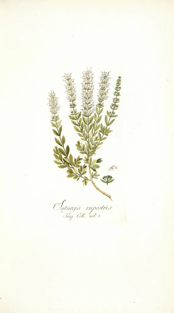 Nikolaus Joseph Freiherr von Jacquin, an emblematic figure of the 18th century, skillfully combined his passion for botany with his artistic talent. As a botanist, he dedicated his life to studying plants, traveling around the world to discover new species. His illustrations, such as that of Satureja rupestris, demonstrate his attention to detail and his desire to share the beauty of nature with the world. Jacquin thus marked his era with contributions to science and art, making his works references in the field of botanical illustration.