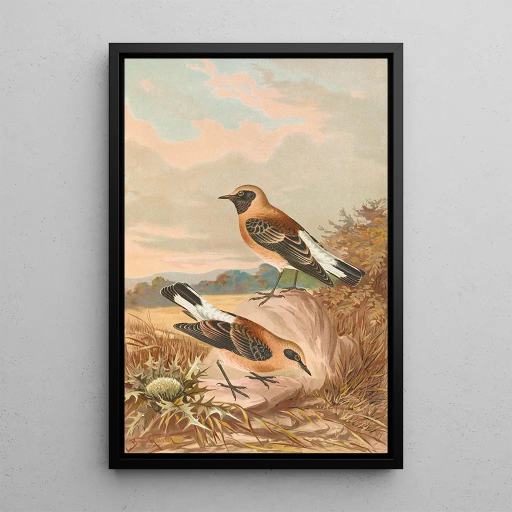 This art print of Saxicola stapazina Saxicola aurita is an ideal decorative piece to bring a touch of nature to your interior. Whether in a living room, office, or bedroom, this painting draws the eye and sparks admiration. Its print quality and fidelity to the original colors make it a perfect choice for art and nature enthusiasts. With its aesthetic appeal, this canvas will enrich your decor while adding a serene and inspiring atmosphere.