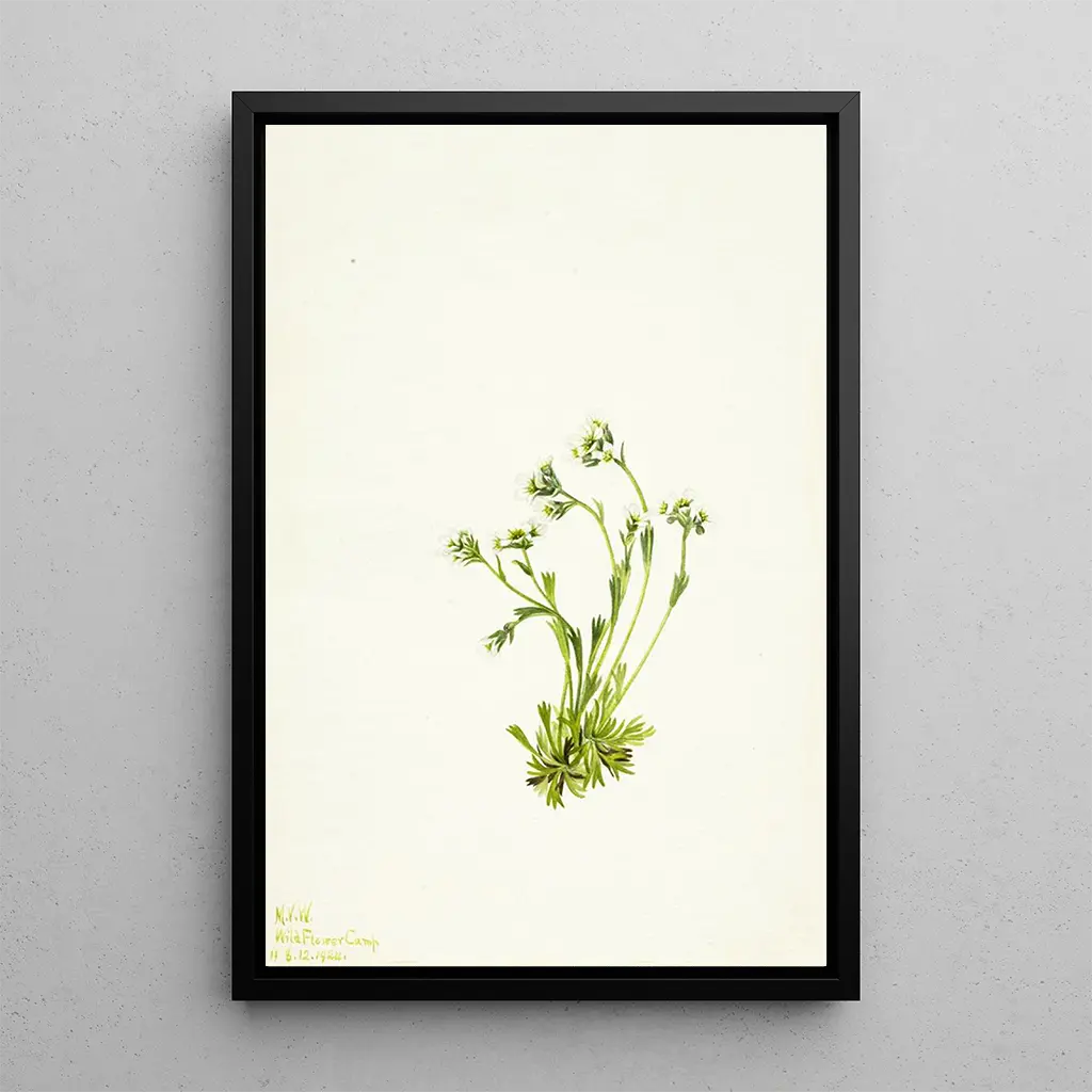 The art print of Saxifrage Saxifraga caespitosa immerses us in a delicate floral universe, where every detail is carefully observed. The green and white hues blend harmoniously, evoking the freshness of the mountains. The watercolor technique, used by Mary Vaux Walcott, gives this piece a lightness and transparency that capture the light in a unique way. The atmosphere emanating from this canvas is soothing, inviting contemplation of the wonders of nature. Each petal seems to vibrate under the breath of the wind, creating an intimate connection between the observer and the natural world.