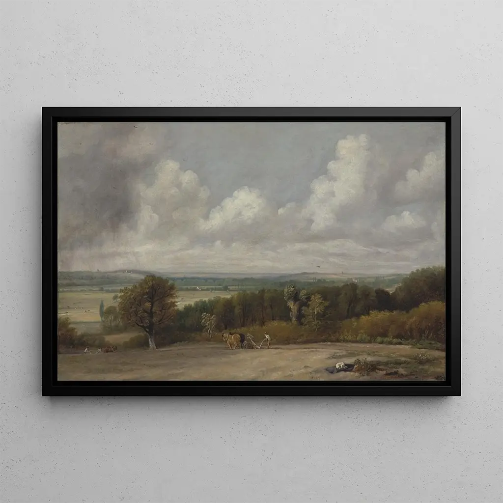 Scene of plowing in Suffolk: a vibrant tableau of English rural life The art print of Scene of plowing in Suffolk immerses us in the bucolic landscapes of 19th-century England. John Constable, with his mastery of colors and textures, captures the golden light of the sun on the plowed fields. Shades of green and brown intertwine, creating an atmosphere that is both peaceful and dynamic. The characters, engaged in their work, add a human dimension to this scene, evoking the simplicity and beauty of agricultural life. Every brushstroke reflects meticulous attention to detail, making this work both realistic and poetic. John Constable: the master of romantic landscape John Constable, born in 1776, is one of the most emblematic painters of the Romantic movement in England. Influenced by the surrounding nature of his childhood in Suffolk, he was able to translate the beauty of British landscapes with a unique sensitivity. His technique, which favors direct observation of nature, revolutionized landscape painting of his time. Constable was also a pioneer in the use of light and atmosphere, inspiring many future artists. His ability to capture the essence of English rural life makes him a key figure in art history. A decorative acquisition with multiple assets Choosing an art print of Scene of plowing in Suffolk means selecting a piece that will enhance your interior while adding a touch of history and culture. Whether in a living room, office, or bedroom, this tableau invites contemplation and serenity. Its reproduction quality guarantees fidelity to the colors and details of the original, allowing full appreciation of Constable's talent. With its undeniable aesthetic appeal, this canvas will attract art lovers and nature enthusiasts alike, transforming your space into a place of inspiration and beauty.