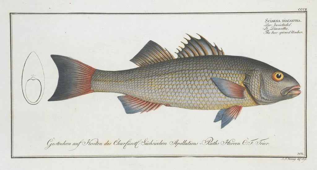 Art print Sciaena diacantha, the two-spined sea bass - Marcus Elieser Bloch | Art print