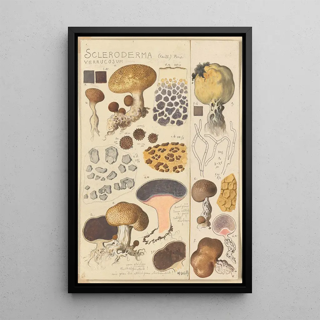 The reproduction of Scleroderma verrucosum is a valuable addition to any art collection, bringing a touch of nature to your interior decor. Whether in a living room, office, or bedroom, this art print draws the eye and sparks interest. Its reproduction quality ensures exceptional fidelity to the details of the original work, allowing you to appreciate every nuance and texture. By choosing this art print, you enrich your space with a piece of art that celebrates the beauty of the natural world while offering a warm and welcoming atmosphere.