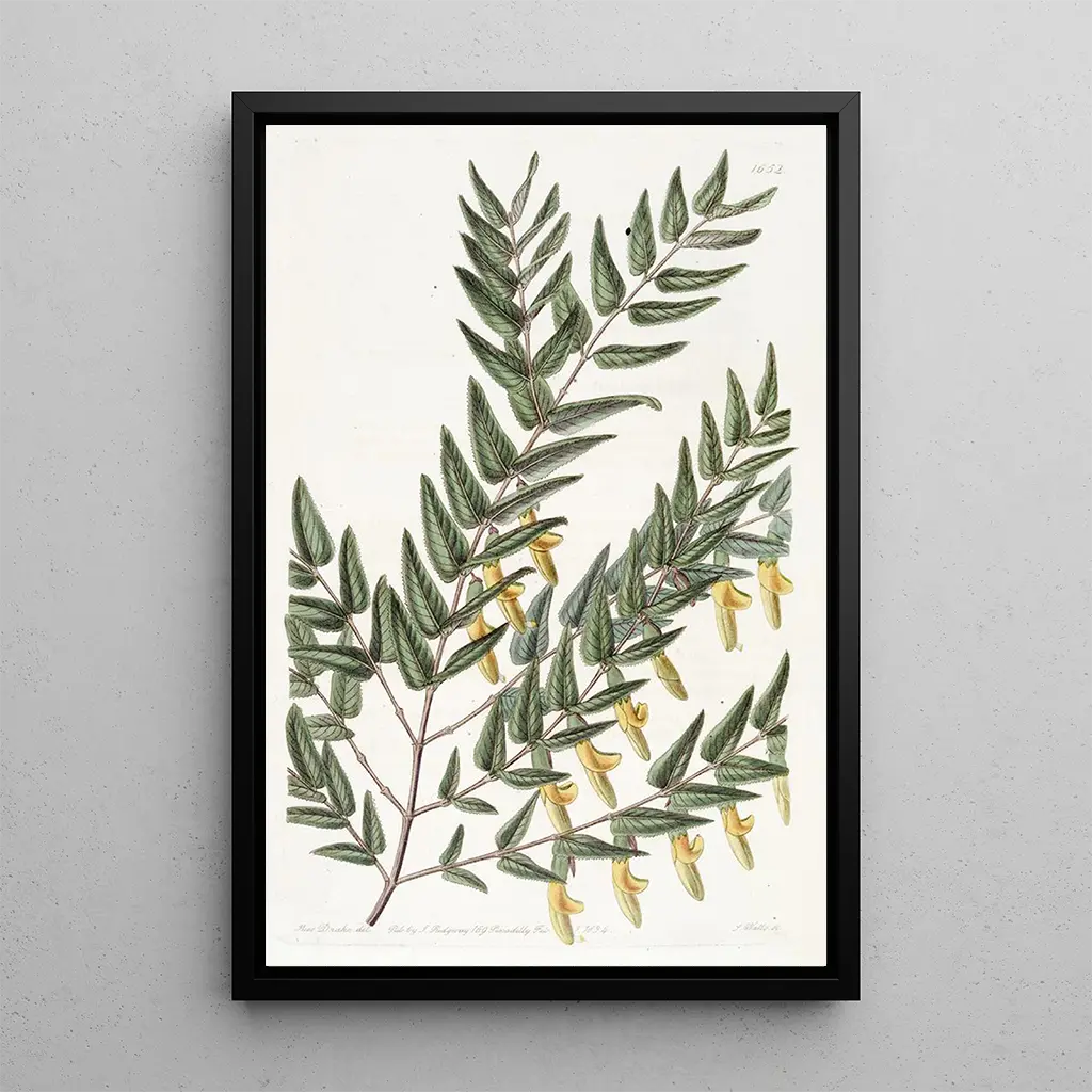 The art print of Scottia à branches lisses, a work by Sydenham Edwards, immerses us in a world where nature expresses itself with strength and elegance. The flowing lines of the branches, combined with vibrant hues, create a harmonious composition that captures the eye. Every detail is carefully rendered, demonstrating the artist's skill in capturing the very essence of this plant. The atmosphere conveyed by this canvas evokes both robustness and delicacy, inviting a visual exploration of botanical wonders. It is a true celebration of flora, awakening the senses and inspiring contemplation.