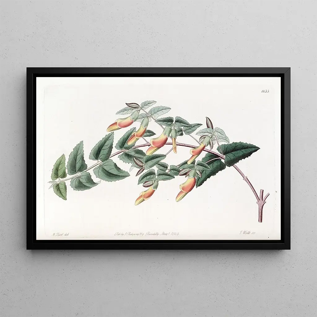 The art print of Scottia with toothed leaves features a delicate and captivating beauty, highlighting the richness of flora. The shades of green and yellow blend harmoniously, creating a lively tableau that draws the eye. The watercolor technique used by Sydenham Edwards allows for detailed rendering of the leaves with a lightness and transparency that evoke the freshness of gardens. This piece invites immersion into nature, where each leaf seems to vibrate under the light, revealing the magic of the plant world.