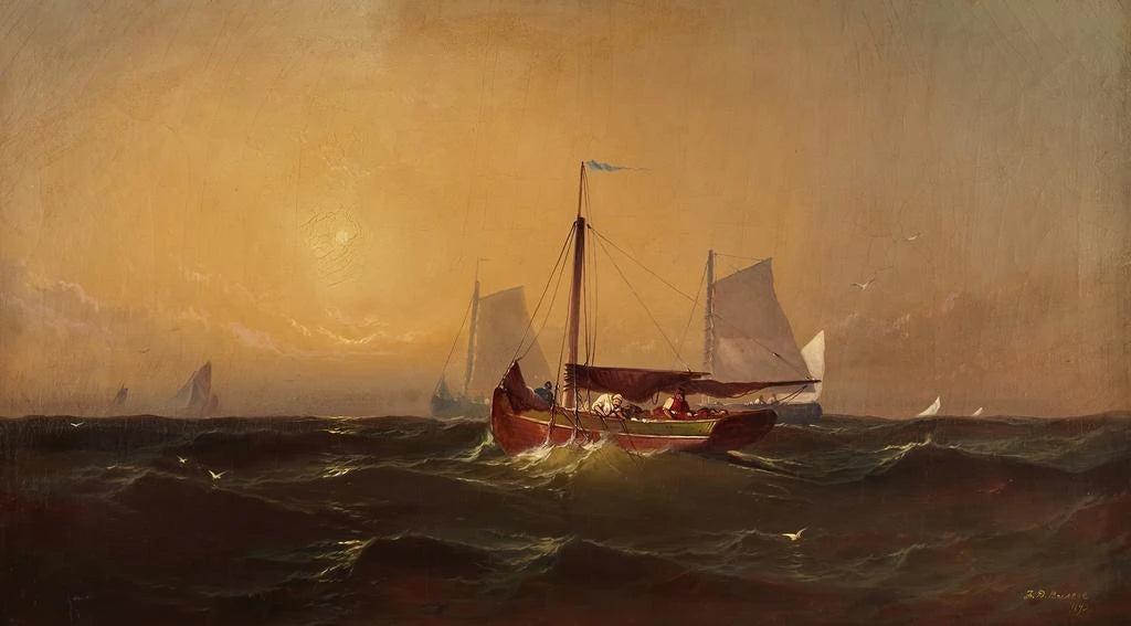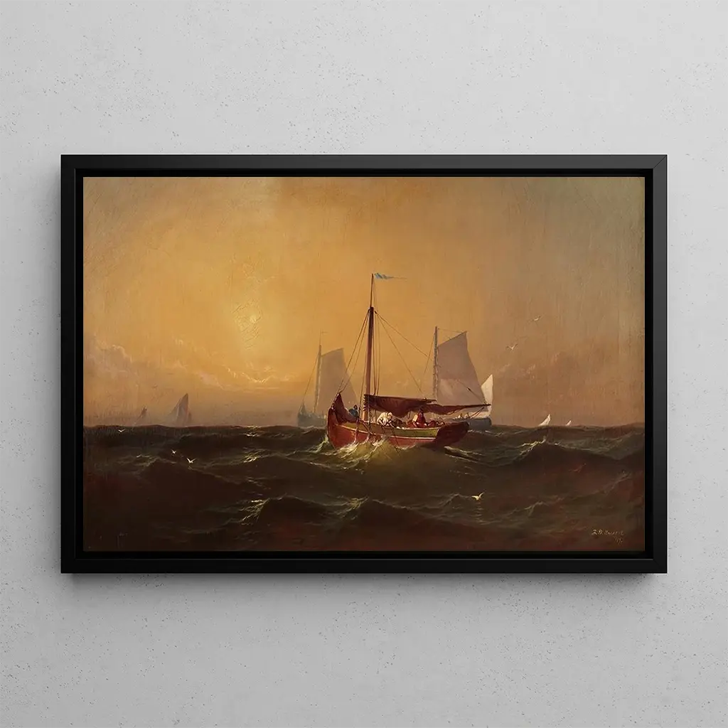 Scene of the sea with boats: a dance between sky and sea The art print of the canvas Scene of the sea with boats by Franklin D Briscoe evokes a peaceful atmosphere where the horizon blends with the reflections of the waves. The shades of blue and green harmonize beautifully, creating a sense of depth and serenity. The white sails of the boats, delicately painted, appear to float lightly, while the sky, dotted with clouds, adds a dramatic dimension to this maritime scene. Briscoe's impressionist technique, characterized by fluid brushstrokes, invites the viewer to immerse themselves in this idyllic vision of the sea. Franklin D Briscoe: a master of American landscape art Franklin D Briscoe, active in the late 19th and early 20th centuries, is an American painter renowned for his marine landscapes and scenes of everyday life. Influenced by Impressionism, he captured the light and atmosphere of his subjects with great finesse. His work is part of a period when American art began to free itself from European influences, seeking to establish a distinct identity. Briscoe exhibited in numerous galleries and contributed to the evolution of American landscape art, making him an important figure of his time. A decorative acquisition with multiple advantages The art print of Scene of the sea with boats makes an ideal decorative piece for various spaces such as the living room, office, or bedroom. Its print quality and fidelity to the original work ensure undeniable aesthetic appeal. By incorporating this artwork into your interior, you bring a touch of serenity and elegance, while evoking the timeless beauty of marine landscapes. This canvas will appeal to art lovers and nature enthusiasts alike, making it a wise choice to enrich your decor.