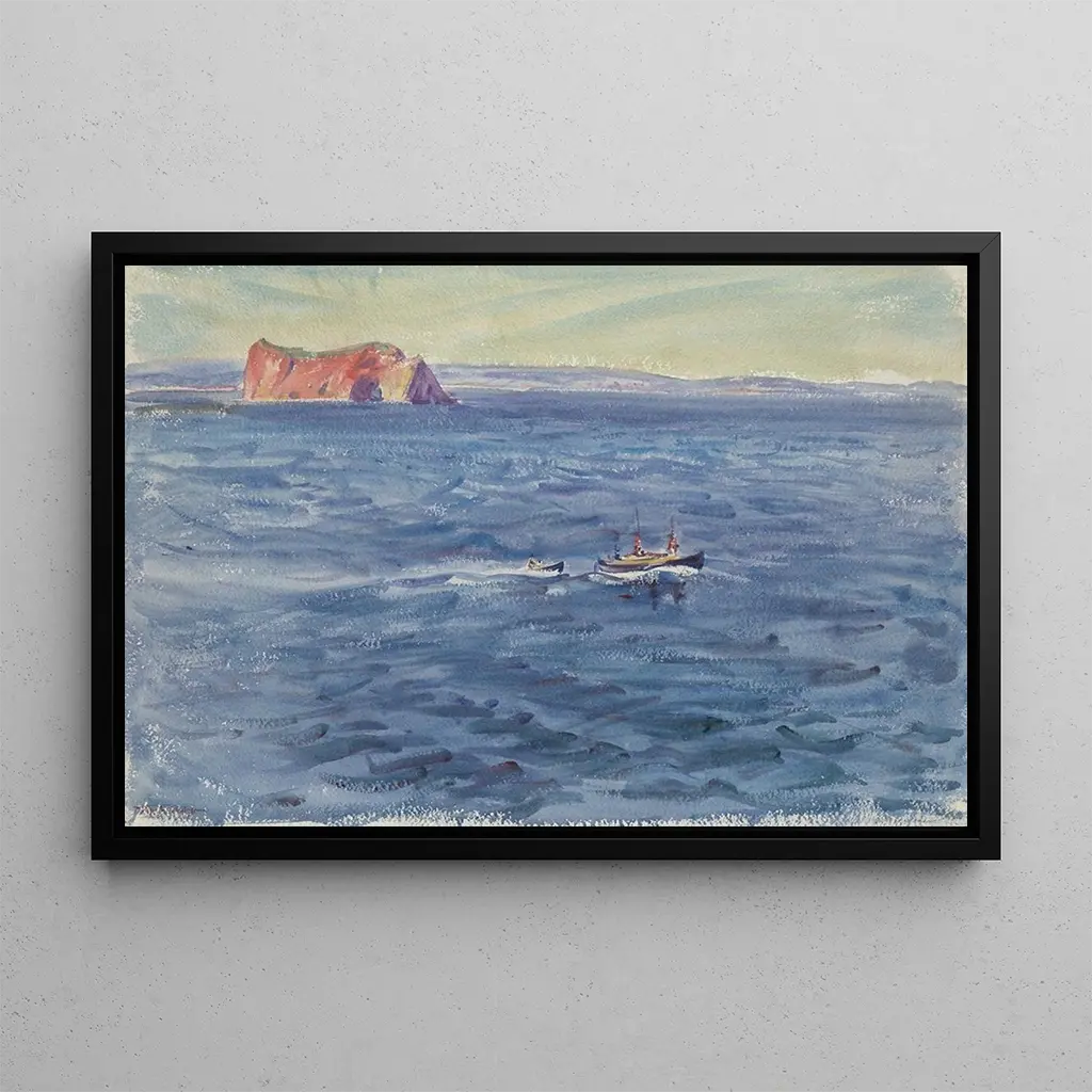 Seascape with Boat and Cliffs: An Escape to the Horizon The painting "Seascape with Boat and Cliffs" by Dodge MacKnight evokes a serene and contemplative atmosphere. The shades of blue and green blend harmoniously, creating a sense of depth and infinity. The soft light of the setting sun illuminates the boat, which seems to drift peacefully on the waves, while the majestic cliffs rise in the background, adding a dramatic dimension to the scene. MacKnight's technique, which combines impressionism and realism, allows viewers to feel the sea breeze and the whisper of the waves, transporting them to a moment of calm and natural beauty. Dodge MacKnight: a master of light and color Dodge MacKnight, active in the late 19th and early 20th centuries, is renowned for his ability to capture light and atmosphere in his works. Influenced by the Impressionist movement, he skillfully integrated elements of nature into his compositions while exploring the effects of light on landscapes. His career, though less well-known than that of some of his contemporaries, has left a lasting mark in the art world, particularly through his seascapes. MacKnight was often inspired by the coasts of New England, where he spent much of his life, which is reflected in the tranquility of his works. A decorative piece with multiple assets The art print of "Seascape with Boat and Cliffs" is an ideal decorative piece to enhance your interior, whether in a living room, office, or bedroom. Its print quality and fidelity to the original colors guarantee undeniable aesthetic appeal. This art print invites dreaming and escapism, bringing a touch of serenity to your space. By choosing this piece, you opt for a work that not only enriches your decor but also evokes the timeless beauty of nature, making each glance a new discovery.
