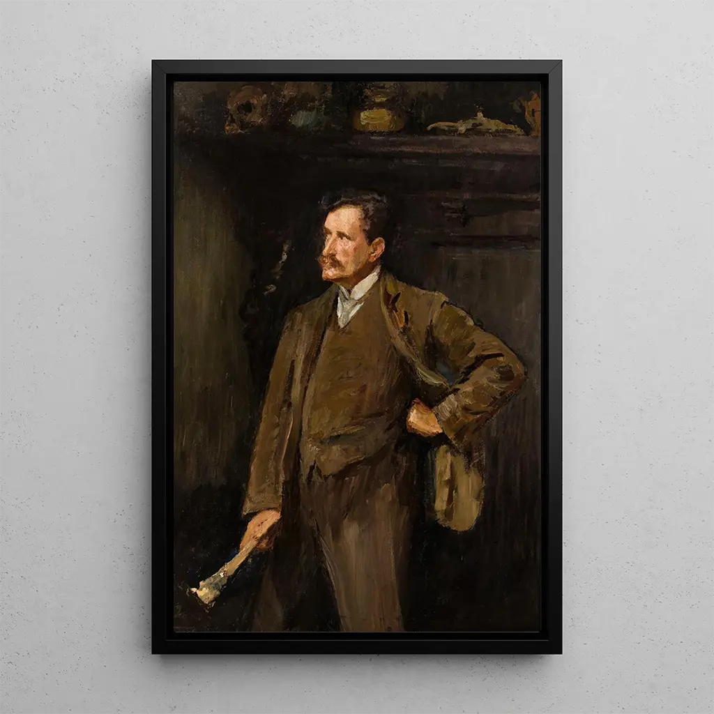 In this art print, Jan Cybis reveals himself with poignant intensity. The rich colors and delicate nuances of his palette create an atmosphere that is both introspective and vibrant. Light plays a crucial role, illuminating his face while mysterious shadows envelop the rest of the canvas. The artist's technique, skillfully blending realism with a touch of expressionism, invites the viewer to delve into his inner universe. Each brushstroke seems charged with emotion, revealing not only his appearance but also a part of his essence.