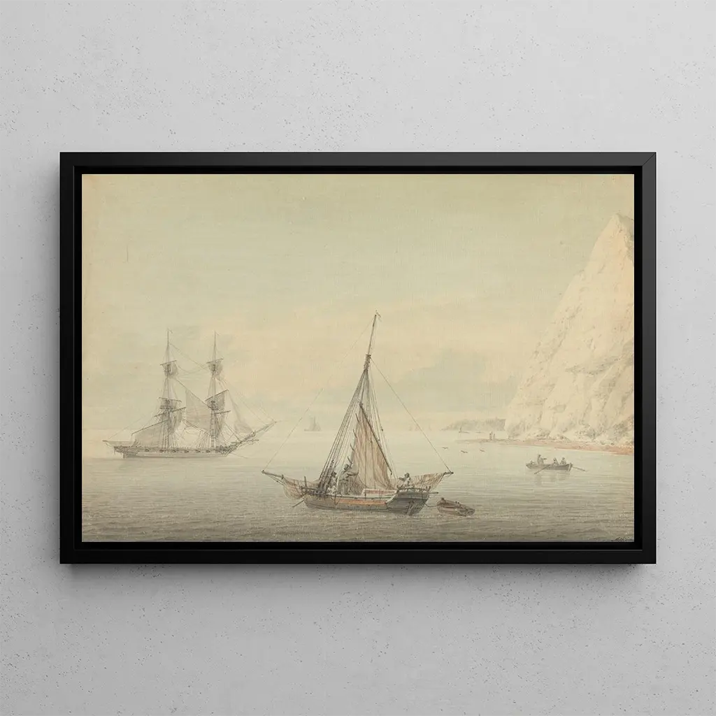 The art print "Falaise de Shakespeare, Douvres" by Samuel Atkins transports us to the edge of the iconic white cliffs of the English coast. This piece, imbued with grandeur, captures the strength and beauty of nature through dynamic brushstrokes and vibrant colors. The shades of blue and white evoke the sea and sky, while the details of the cliffs are rendered with a precision that testifies to the artist's talent. The dramatic atmosphere of this canvas invites reflection on the power of nature, while offering a romantic vision of the British landscape.