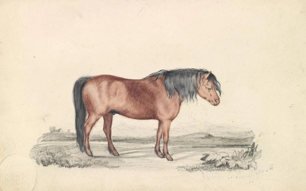 In this captivating art print, the Shetland Pony stands majestically, embodying the grace and strength of this iconic animal. The warm color palette, blending deep browns and golden touches, creates a cozy and inviting atmosphere. The painting technique, rich in detail, highlights the texture of the fur and the sparkle of the eyes, inviting the viewer to immerse themselves in a world where nature and art meet. Each brushstroke seems to tell a story, that of an unbreakable bond between man and animal, a celebration of wildlife.
